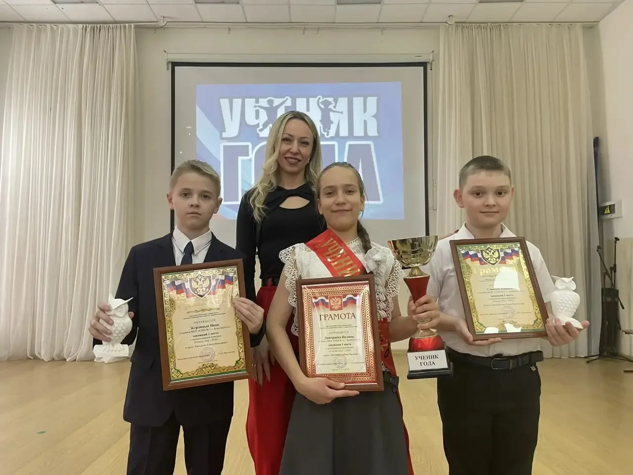 🏆 В рамках мероприятия были награждены грамотами за 2 место Вероника и Ростислав Крюковы, учащиеся 6Б класса и за первое место Мария Разгуляева, ученица 8Б класса в региональном этапе Всероссийского конкурса экскурсоводом образовательных учреждений.