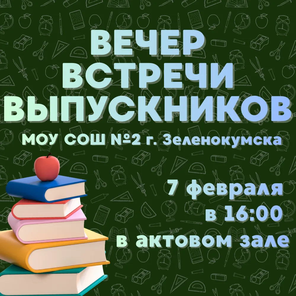 Дорогие выпускники школы №2 города Зеленокумска, с радостью приглашаем вас на долгожданный вечер встречи выпускников!