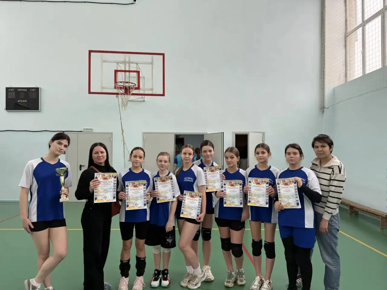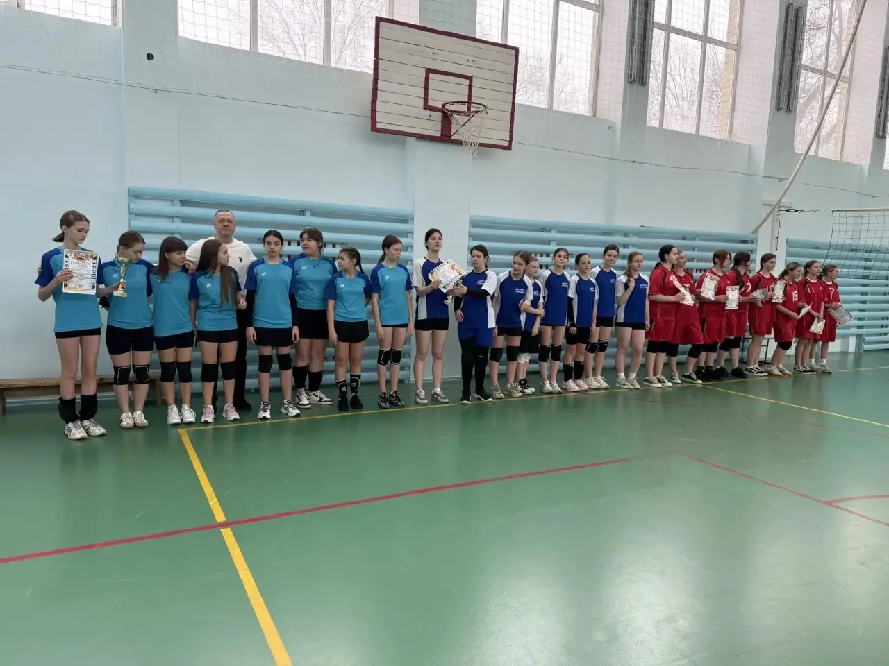 🌟 В конце линейки ученики были награждены грамотами за 1 место в первенстве округа по волейболу среди девушек и юношей.