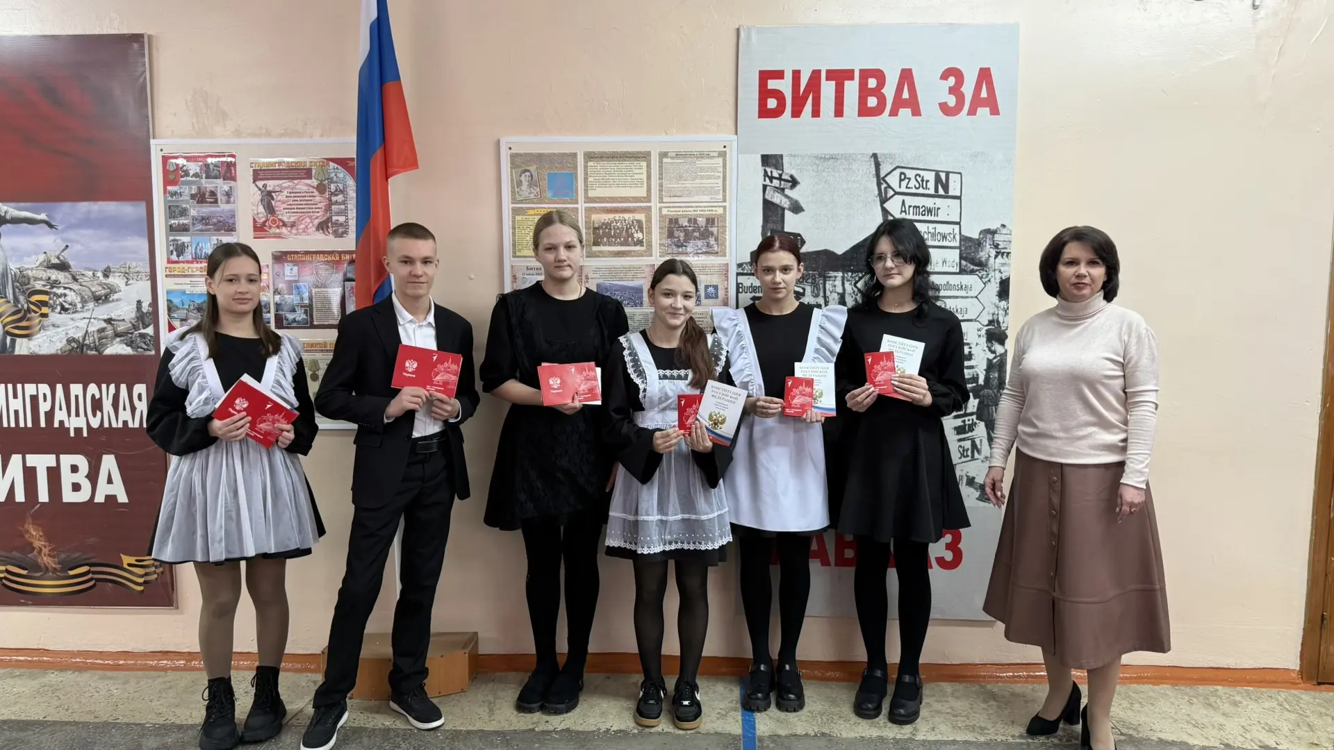 Также в школе состоялась Всероссийская акция «Мы граждане России», в рамках которой были вручены паспорта, конституция России и значок Движения Первых.