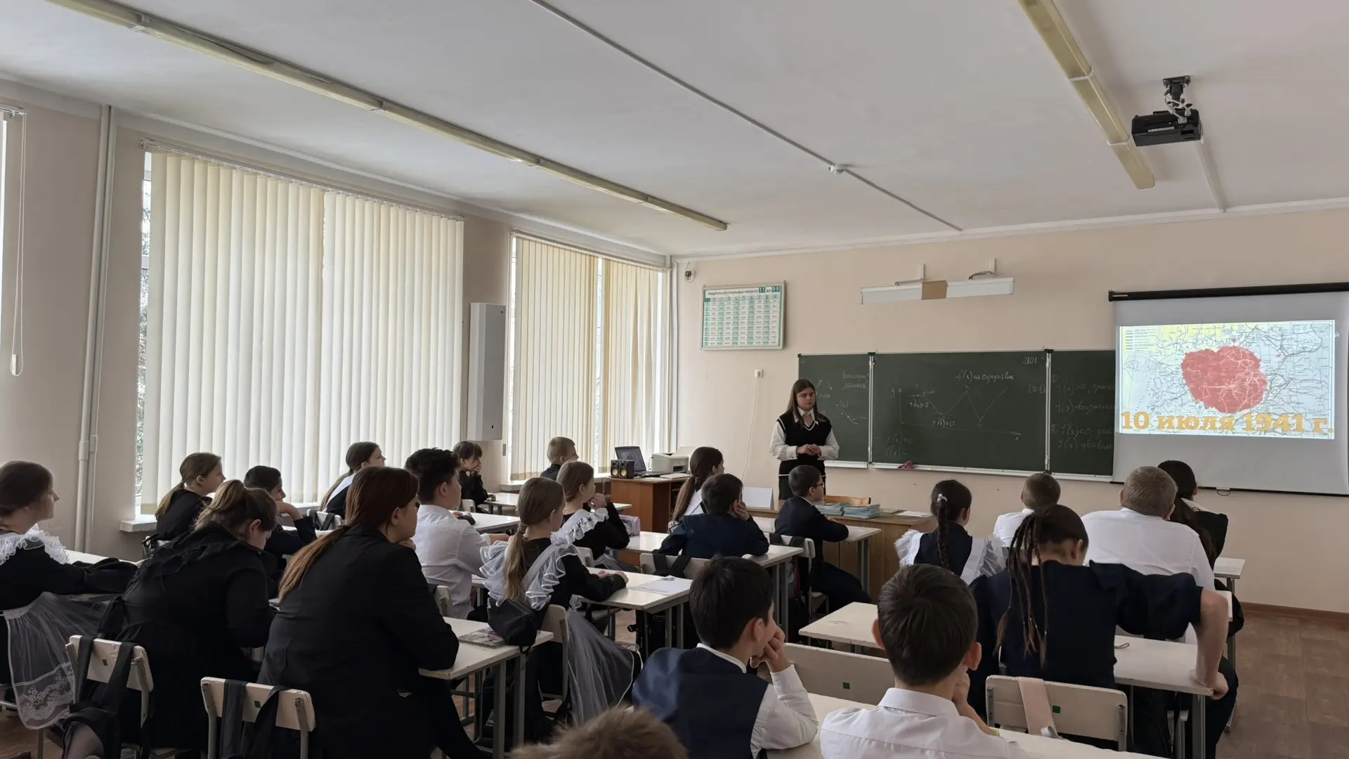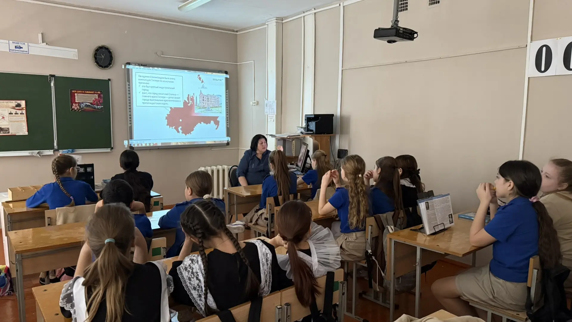 В рамках уроков ребятам рассказывали о том, как бойцы защищали город, а также показали документальные видео хроники тех лет.