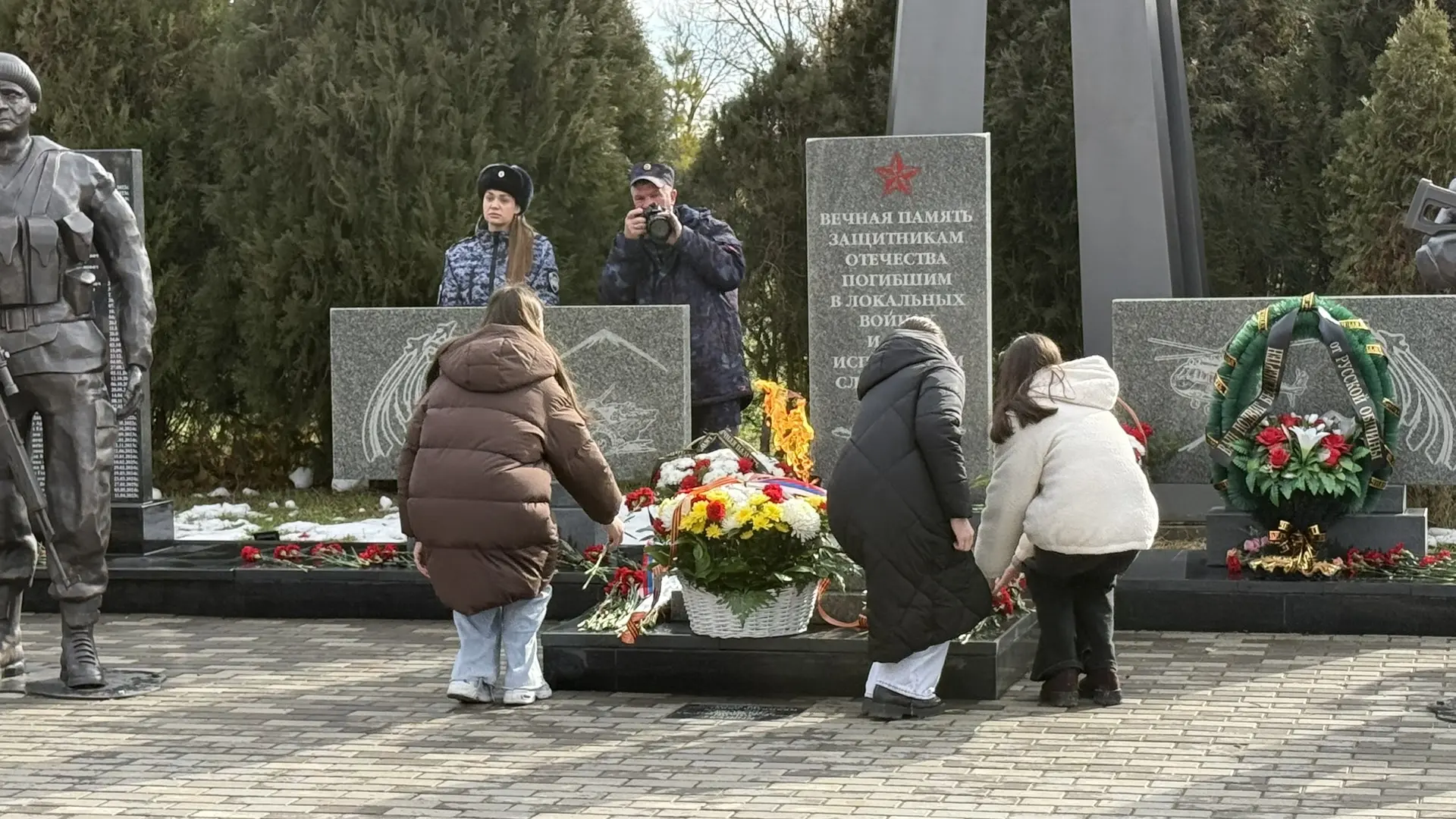 Сегодня, в рамках Дня памяти о россиянах, исполнявших служебный долг за пределами Отечества, учащиеся 10 и 11 класса школы №2 города Зеленокумска приняли участие в возложении цветов к памятнику участникам локальных войн.