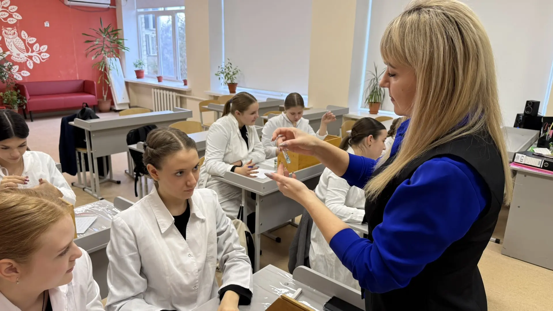 Ольга Андреевна рассказала ребятам о том, как прошла ее первая сессия в институте, какие у нее самые любимые дисциплины, а также поделилась с учащимися своими способами как успевать работать в школе и параллельно учиться в ВУЗе.