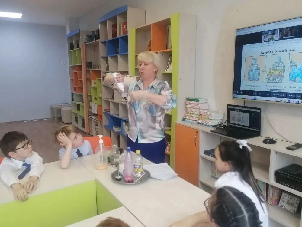 Какой же классный получился онлайн-урок, который проходил в 1б классе! К нам в гости заглянул молодой учёный из МФТИ, и он просто покорил всех своей энергией и интересными рассказами. Ребята не просто слушали, а активно участвовали: наблюдали за эффектным извержением "Вулкана на столе" с помощью обычной соды и уксуса. Потом нас ждал ещё один захватывающий эксперимент- "Слоновая пена", которая выросла прямо на глазах благодаря перекиси водорода и дрожжам. А самое удивительное – ребята увидели, как можно добиться свечения воды в темноте, причём без использования каких-либо источников света или батареек. Это было настоящее погружение в мир науки, которое оставило массу положительных эмоций!
