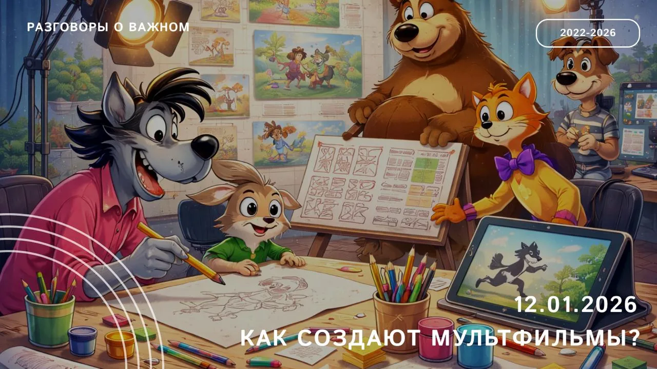 Уважаемые коллеги! 12 января занятие «Разговоры о важном» будет посвящено теме «Как создают мультфильмы?».