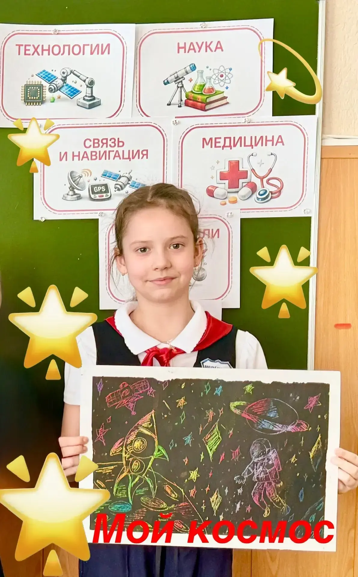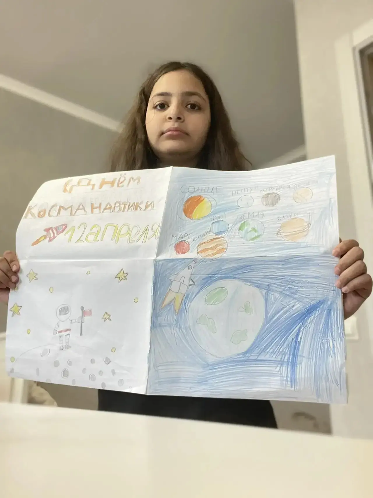 Саркисян Ариана, ученица 3 з класса МБОУ НОШ № 24, приняла участие в онлайн-выставке рисунков ко Дню космонавтики!🧑🏻🚀