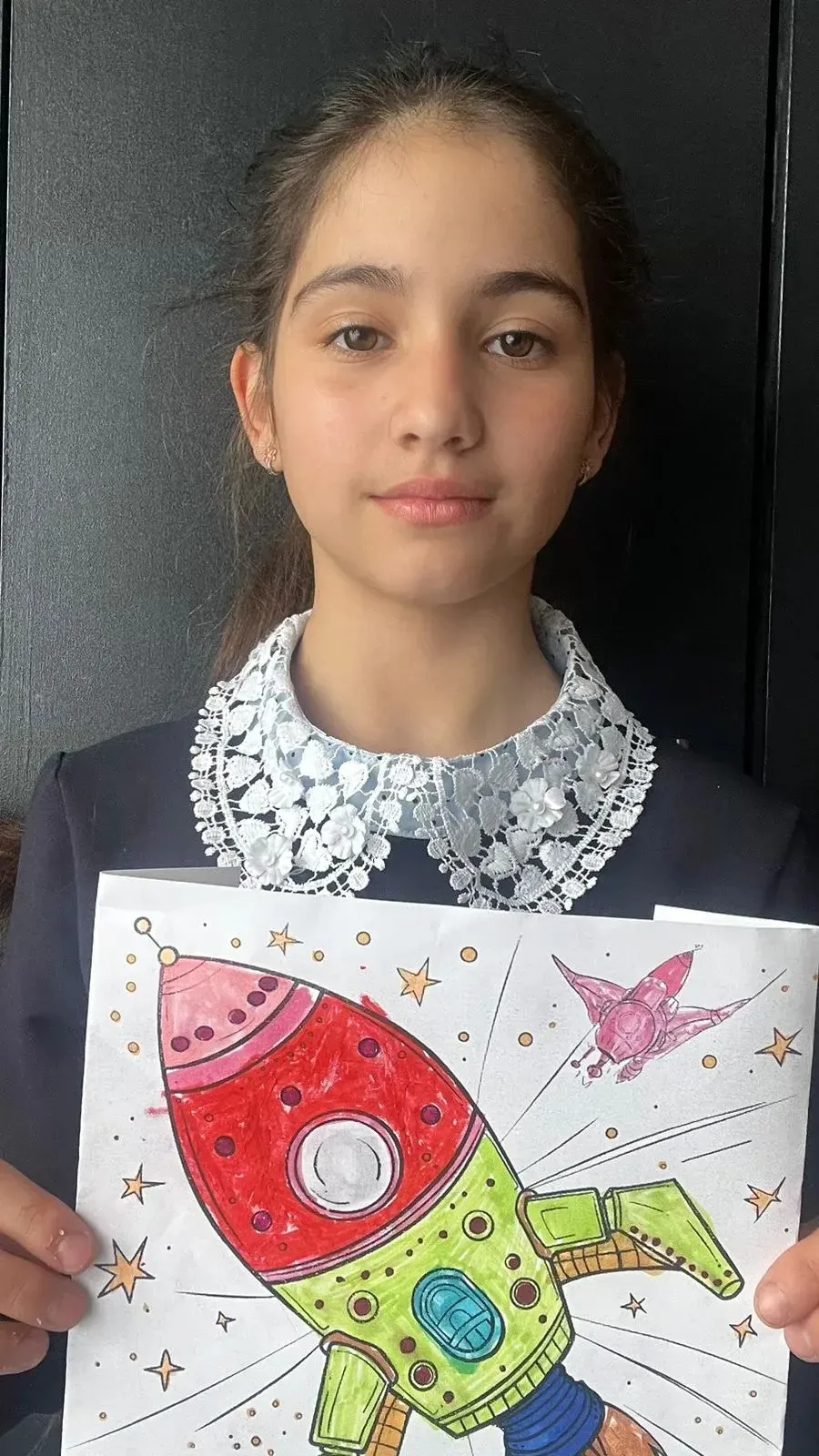 Акопян Аделия, ученица 4 е класса МБОУ НОШ № 24, приняла участие в онлайн-выставке рисунков ко Дню космонавтики!🧑🏻🚀