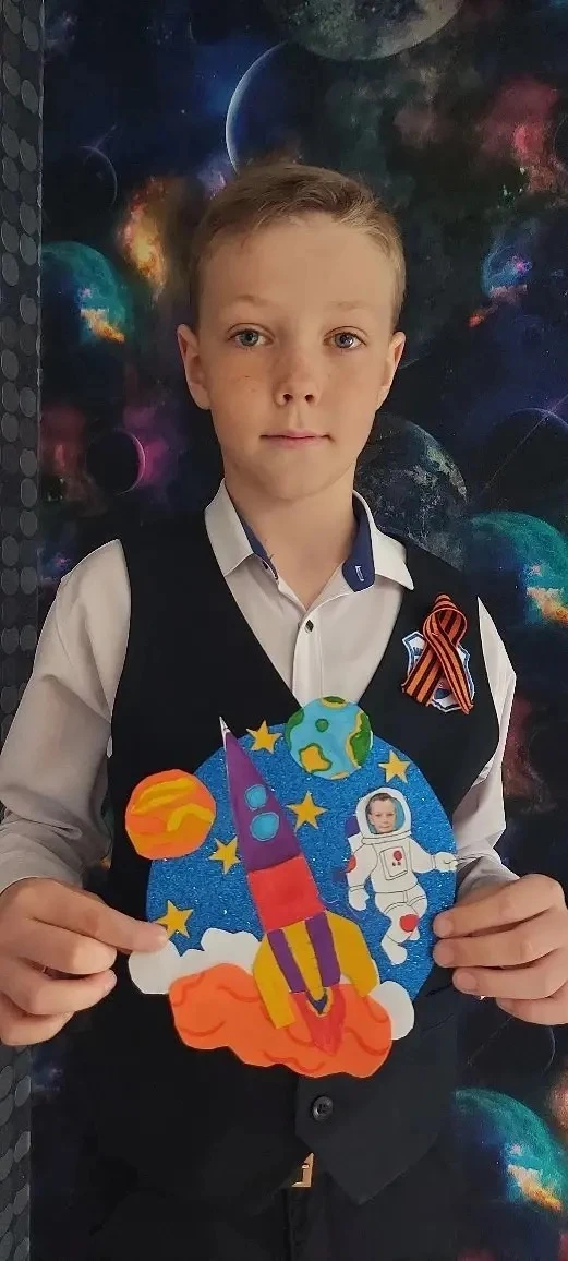 Деев Михаил, ученик 3 з класса МБОУ НОШ № 24, принял участие в конкурсе поделок ко Дню космонавтики! 🧑🏻🚀