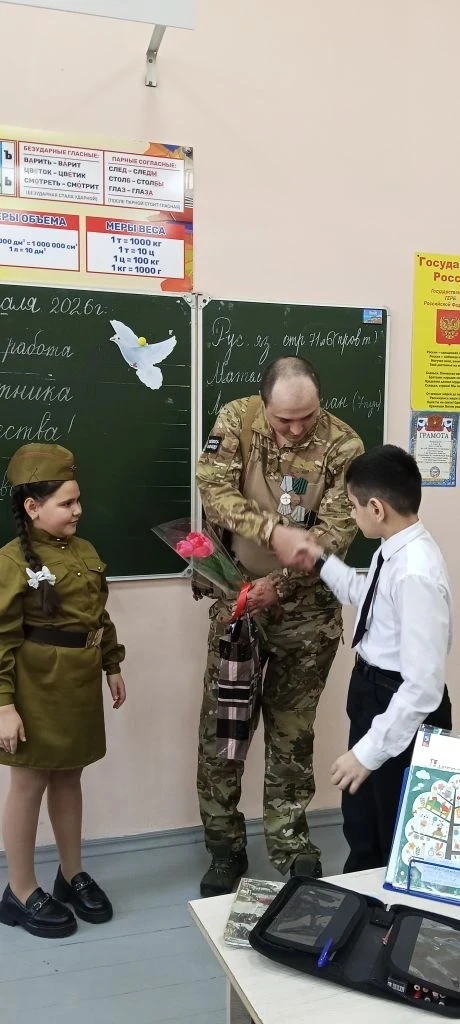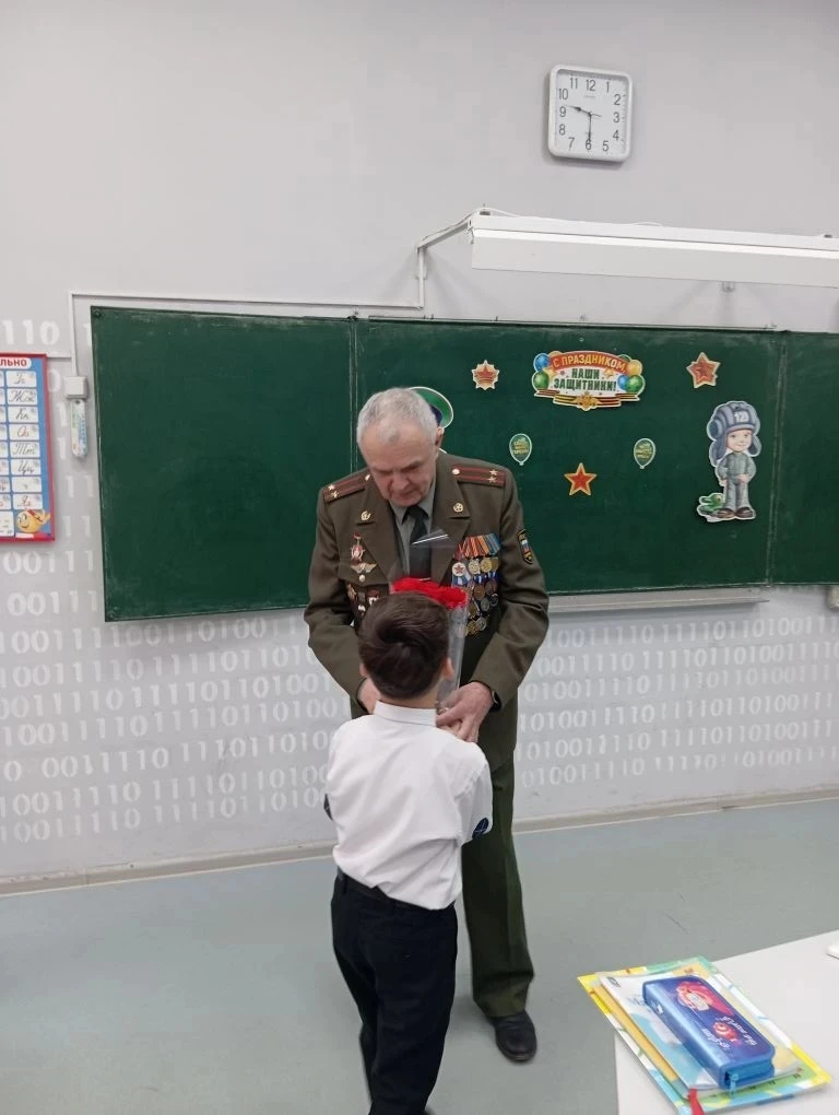 прошла встреча с Игорем Петровичем Однобоковым. С большим волнением дети ждали этой встречи. Ребята с огромным интересом слушали рассказы Игоря Петровича о своей службе, о буднях военных, интересных ситуациях. Первоклассники узнали, насколько важна дисциплина, внимательность и взаимопомощь среди сослуживцев. Игорь Петрович поделился своими впечатлениями, ответил на многочисленные вопросы ребят. Дети получили незабываемые впечатления и новые знания о мужестве, смелости и ответственности настоящих защитников нашего государства. Встреча завершилась искренней благодарностью и пожеланиями Игорю Петровичу крепкого здоровья, счастья, удачи и благополучия. Такие встречи невероятно важны для подрастающего поколения. Они позволяют прикоснуться к живой истории, увидеть настоящего героя и понять, что такое настоящий патриотизм не по учебникам, а из первых уст. Мы уверены, что эта встреча останется в памяти наших ребят надолго и вдохновит их на добрые дела и любовь к своей Отчизне.