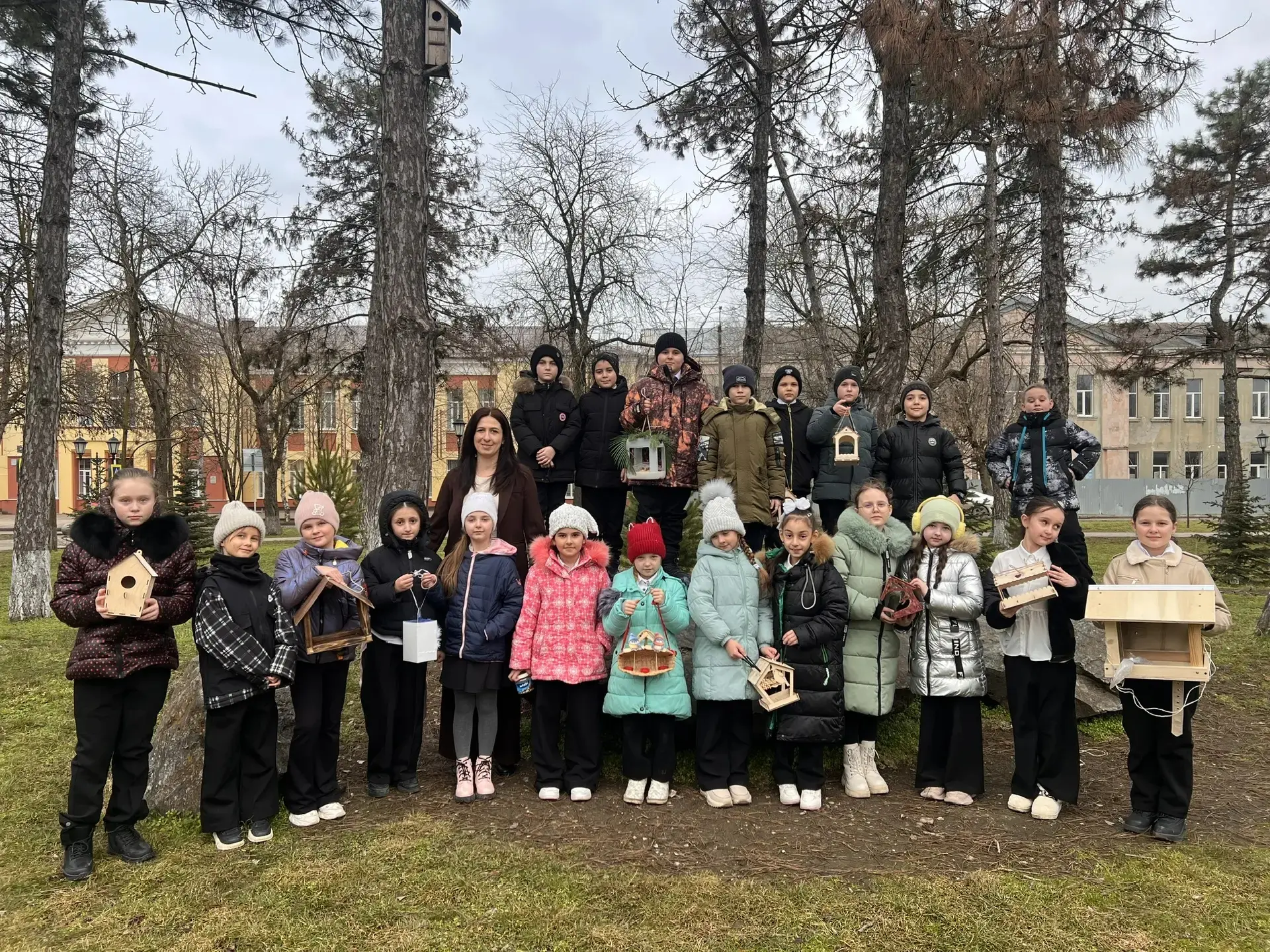 Ребята вместе с классным руководителем отправились в пришкольный сквер, чтобы развесить кормушки, которые они с любовью приготовили вместе с родителями. Теперь у пернатых жителей всегда будет уютная столовая с угощением! 🍽️🌳