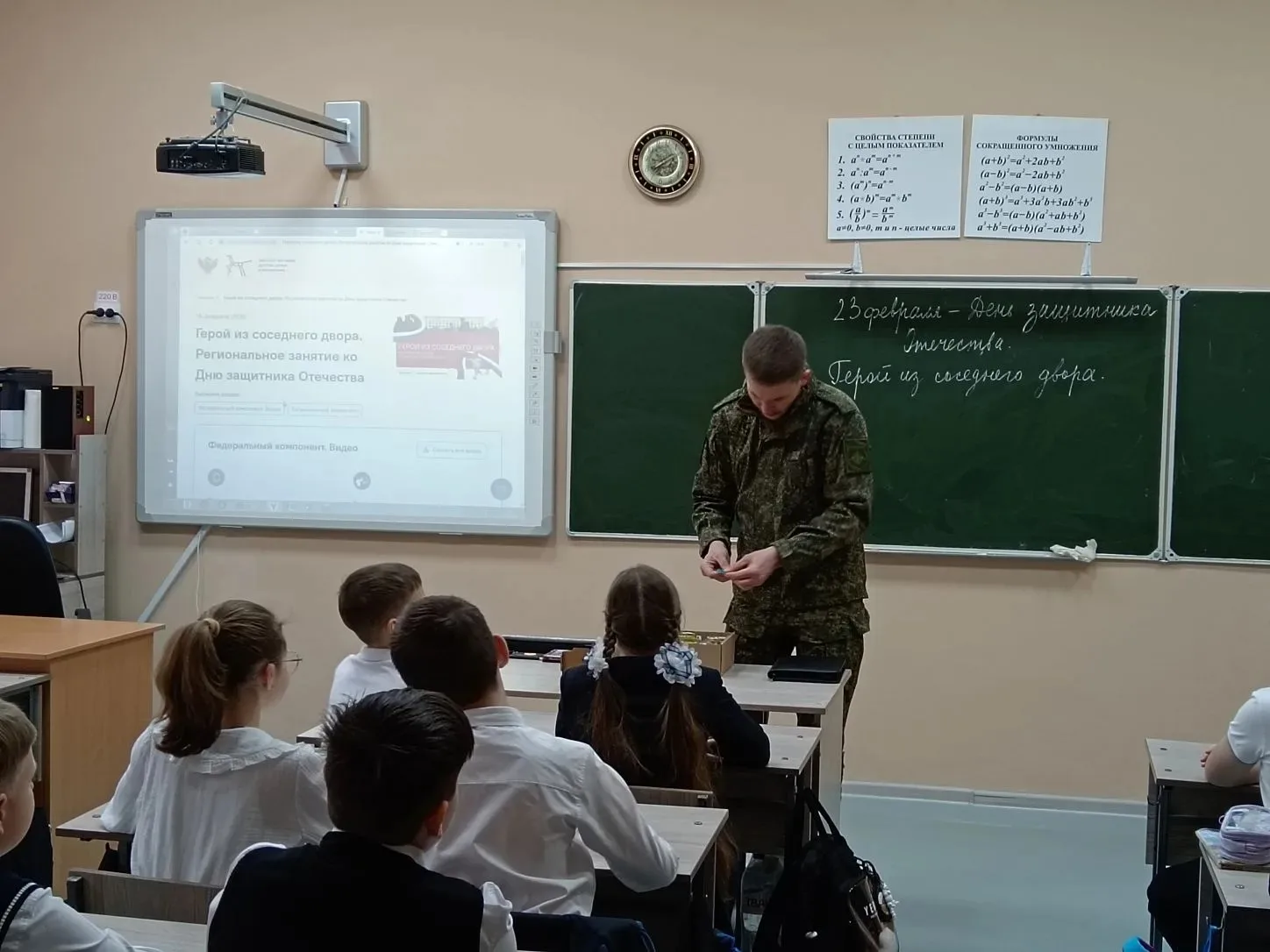 16 февраля в рамках военно-патриотического воспитания прошла встреча учащихся 5 «А» класса с участниками СВО, в ходе которой ребята узнали о повседневной службе и подготовке военнослужащих, важности дисциплины, взаимовыручки и личной ответственности, поговорили о роли образования, спорта и здорового образа жизни.