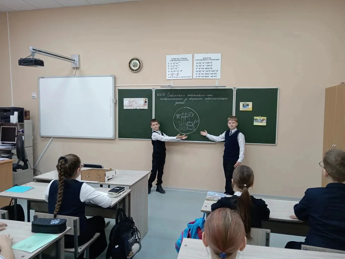 16 февраля в 5 классе А прошло занятие "Разговоры о важном" по теме "Особенность ответственности несовершеннолетних за совершение террористических деяний". С учащимися были обсуждены меры правовых последствий участия подростков в террористической деятельности, проведена профилактическая беседа об ответственности за противоправные действия экстремистского и террористического характера.