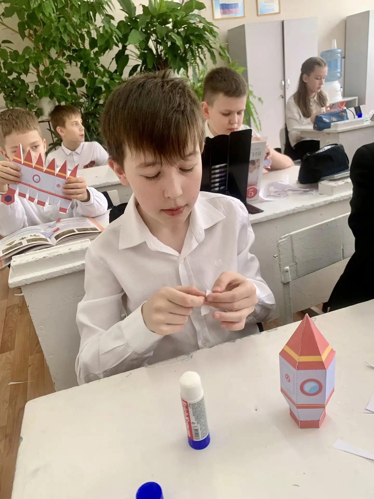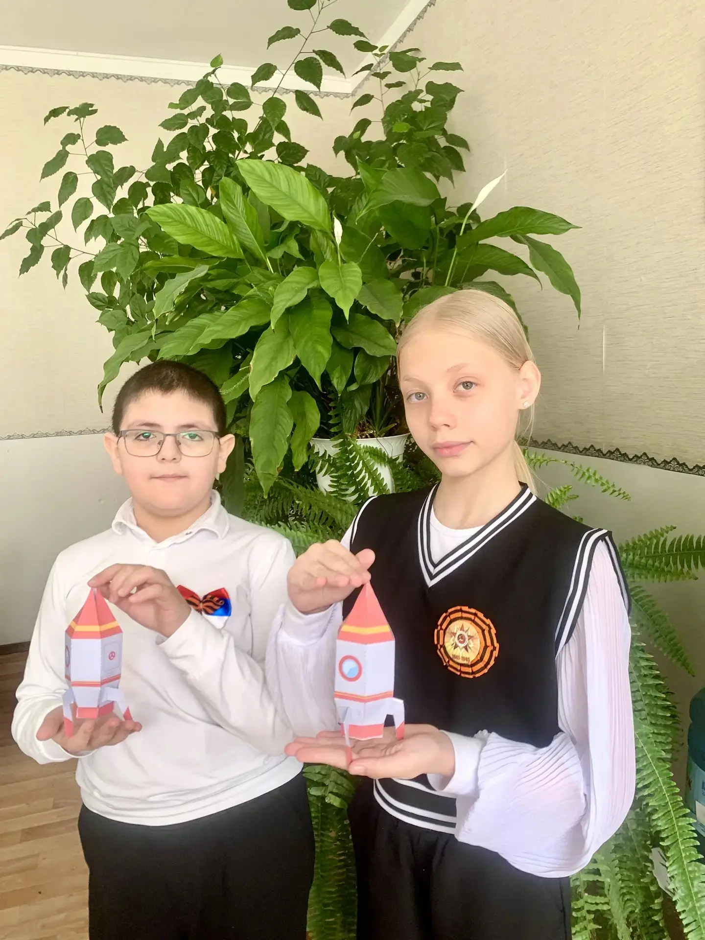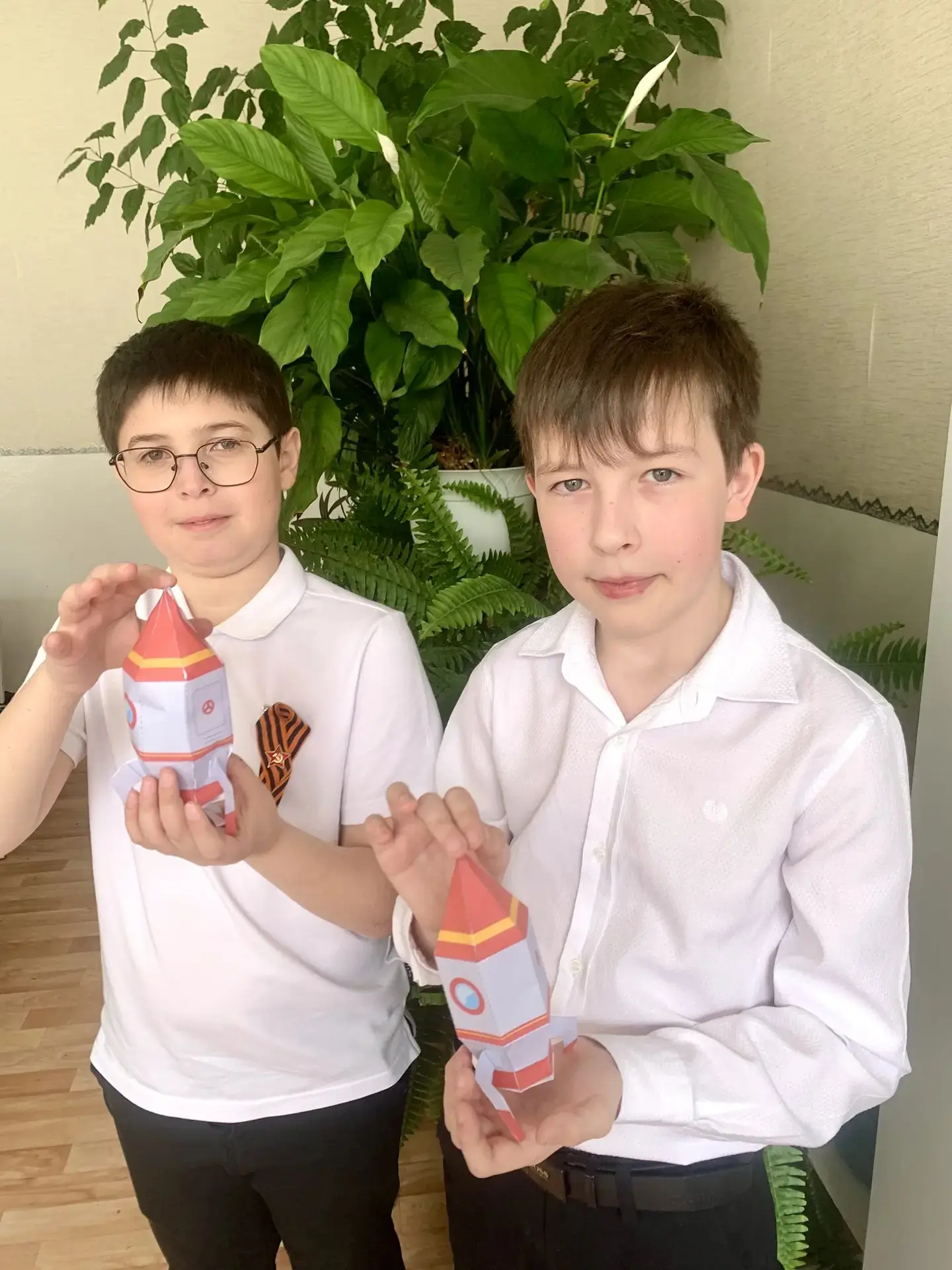 9 апреля в МБОУ СОШ 7 дети 5 А класса выполнили поделки ко Дню космонавтики.