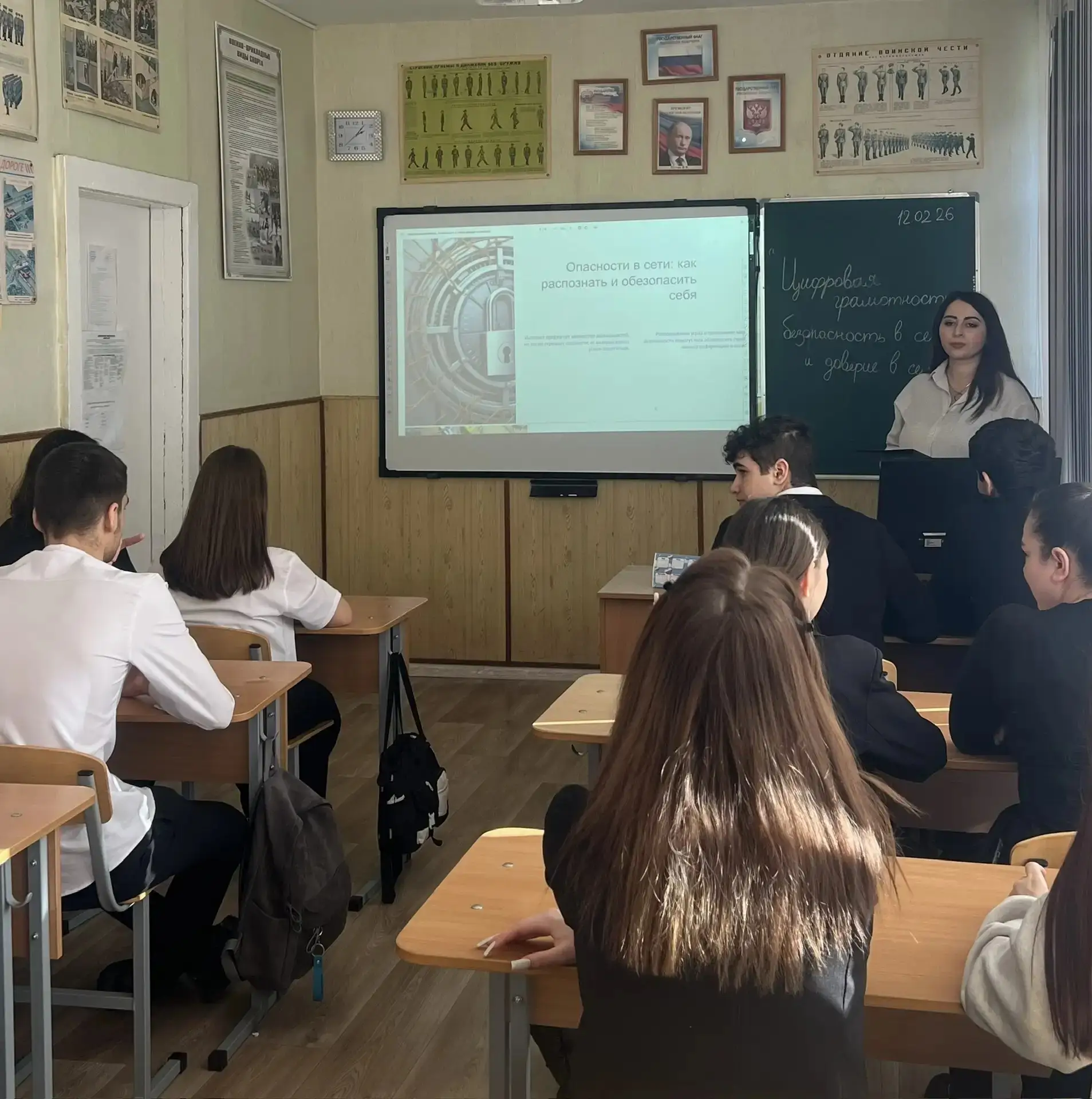 В МБОУ СОШ 7 проведены классные часы на тему «Цифровая грамотность: безопасность в сети-доверие в семье. " Были рассмотрены ключевые аспекты цифровой грамотности, такие как критическое мышление при потреблении информации, понимание угроз и рисков в Интернете.