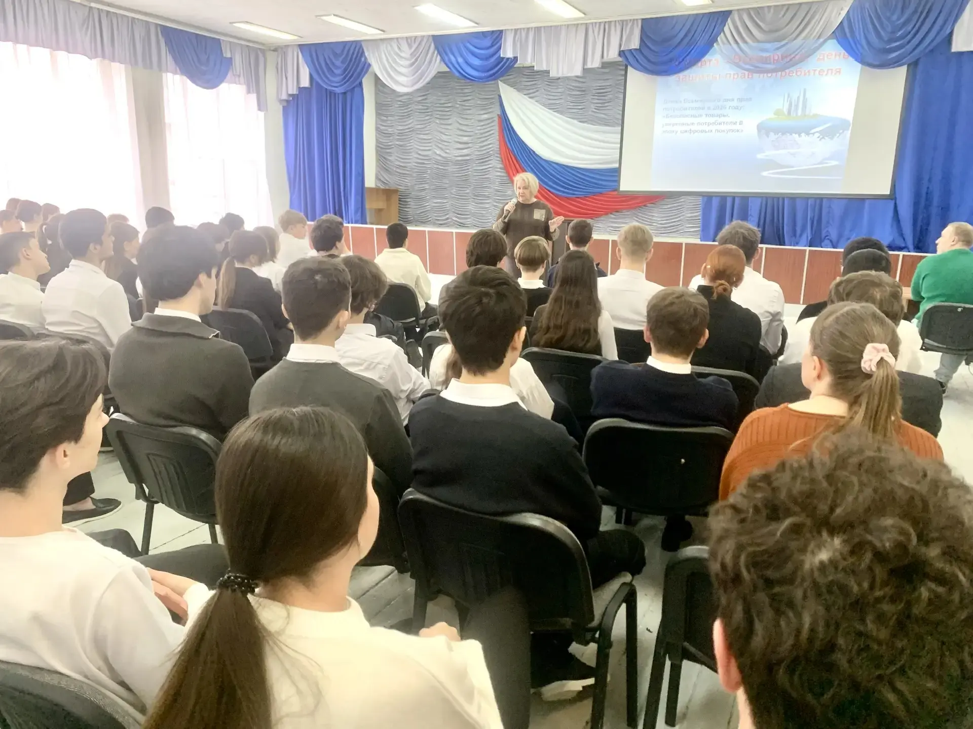 16 марта 2026 года представители Межрайонного территориального отдела Управления Федеральной службы по надзору в сфере защиты прав потребителей и благополучия человека по Ставропольскому краю № 3 провели в МБОУ СОШ № 7 для обучающихся 9, 10 и 11 классов профориентационные мероприятия.