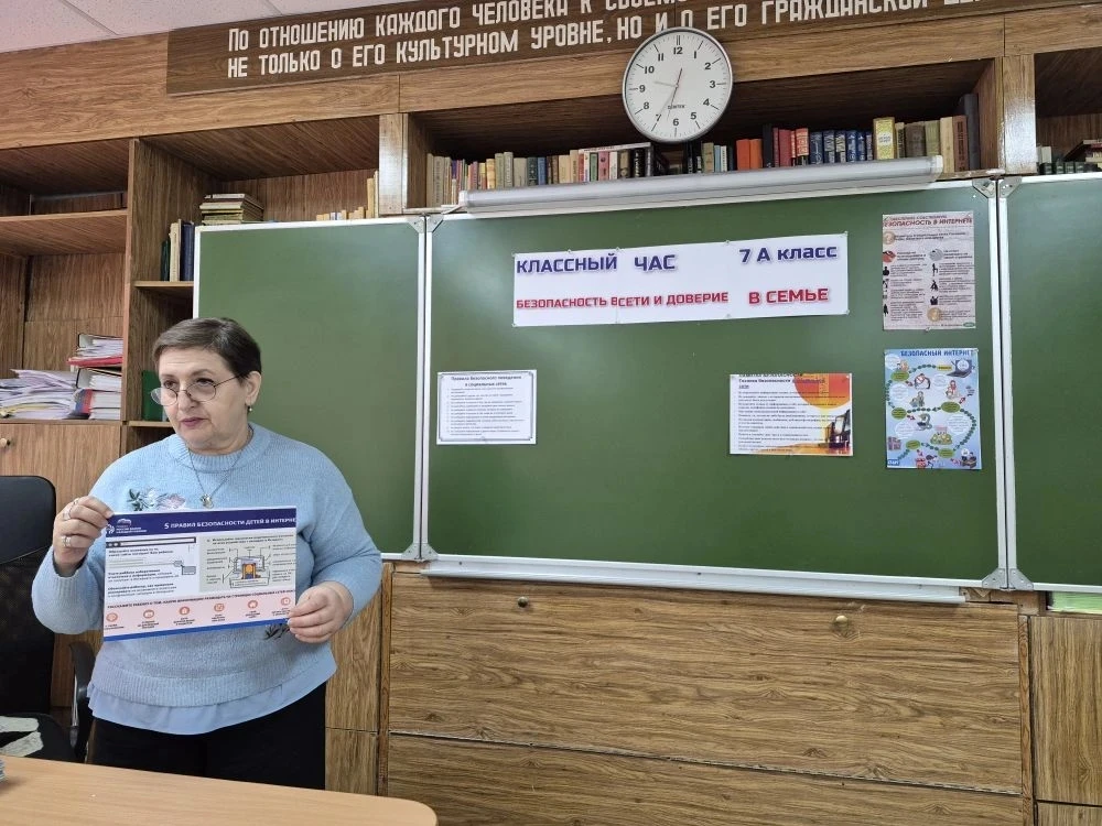 В 7А МБОУ СОШ 7 проведен классный час на тему «Цифровая грамотность: безопасность в сети и доверие в семье. "