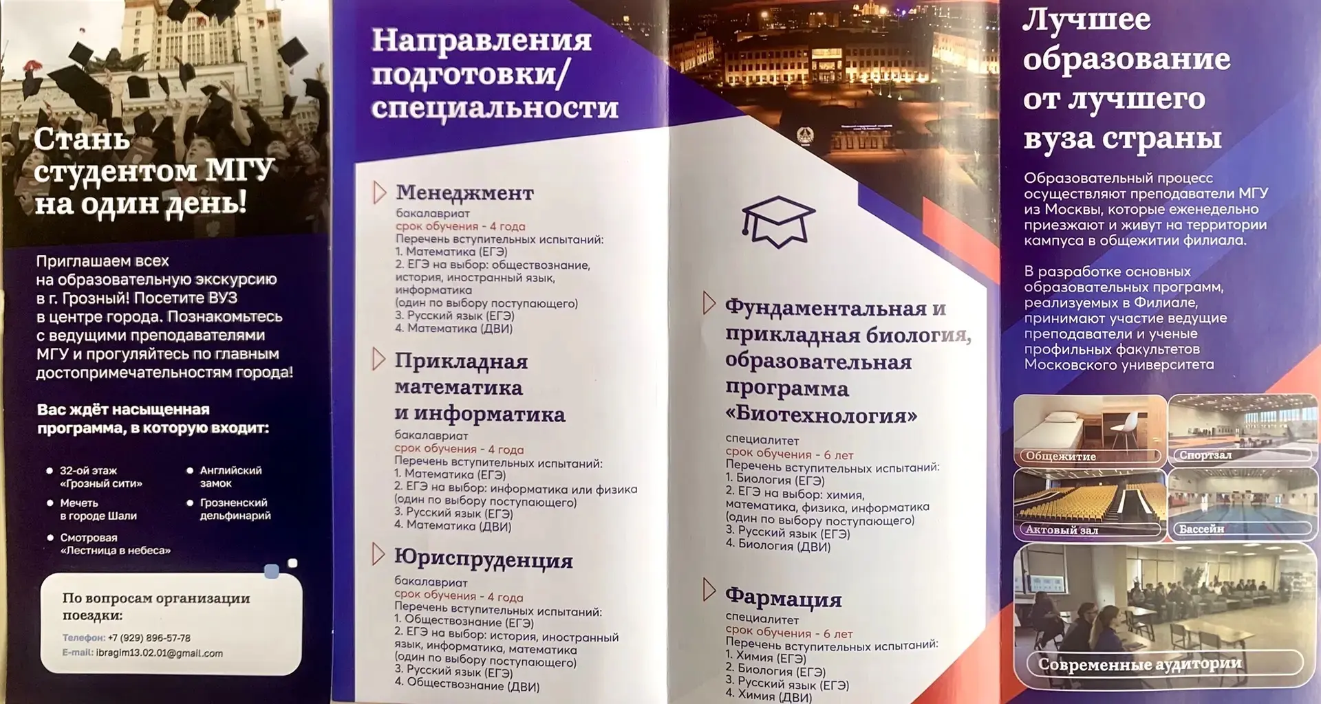 Обучающихся и их родителей пригласили на образовательную экскурсию в город Грозный, посетить ВУЗ в центре города, познакомиться с ведущими преподавателями МГУ и прогуляться по главным достопримечательностям города.