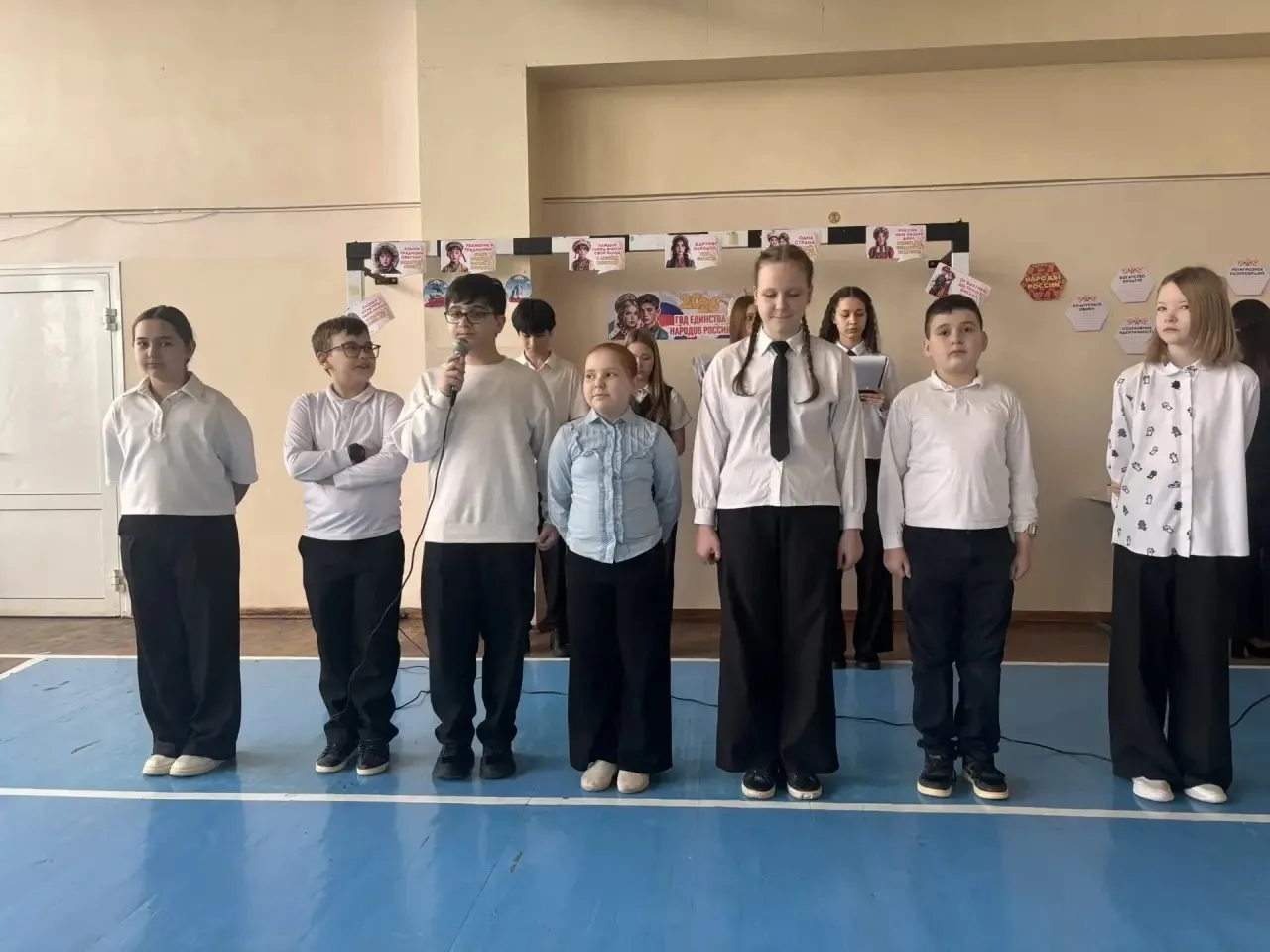 🏫С напутственными словами выступила директор школы Анжела Николаевна. Она поздравила всех с открытием Года единства народов России и познакомила учащихся с запланированными мероприятиями, направленными на воспитание в детях чувства патриотизма, уважения к культуре и традициям всех народов России.