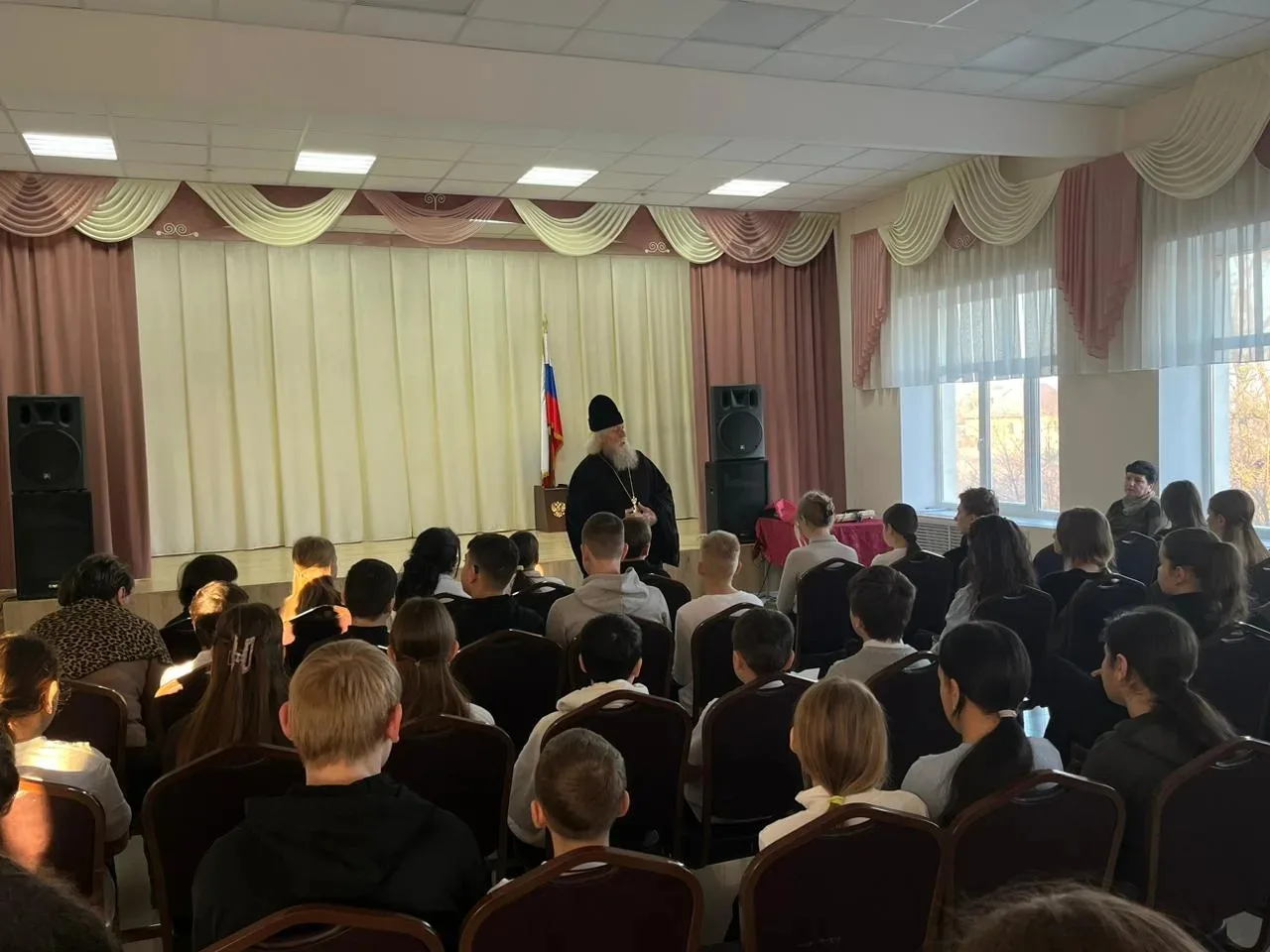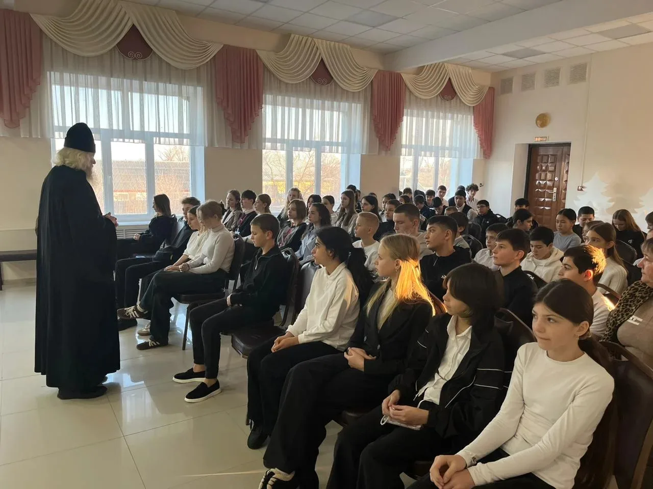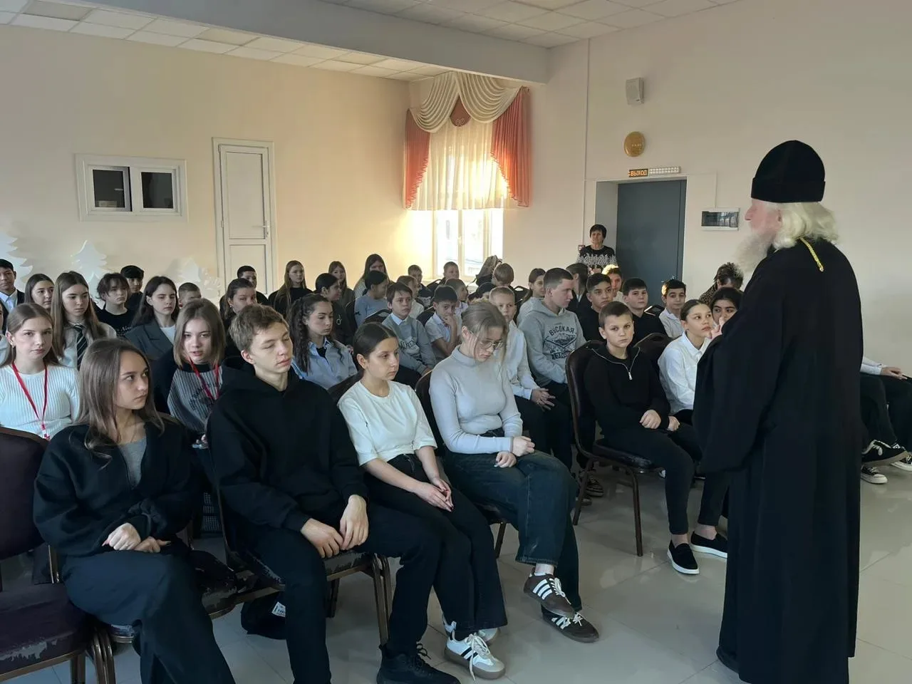 15 января обучающиеся школы встретились с протоиреем храма Казанской иконы Божией Матери отцом Стефанием, который рассказал ребятам о том, что 19 января (6 января по старому стилю) верующие отмечают Крещение Господне, или Богоявление. Крещение, как и Пасха, считается самым древним праздником в христианской культуре. Этот день связан с евангельским событием — крещением Иоанном Предтечей Иисуса Христа в реке Иордан. Главная традиция праздника Крещение Господне — освящение воды, которое происходит в храмах и на водоемах. Воду освящают дважды: накануне — 18 января и непосредственно в день Богоявления — 19 января на Божественной литургии.