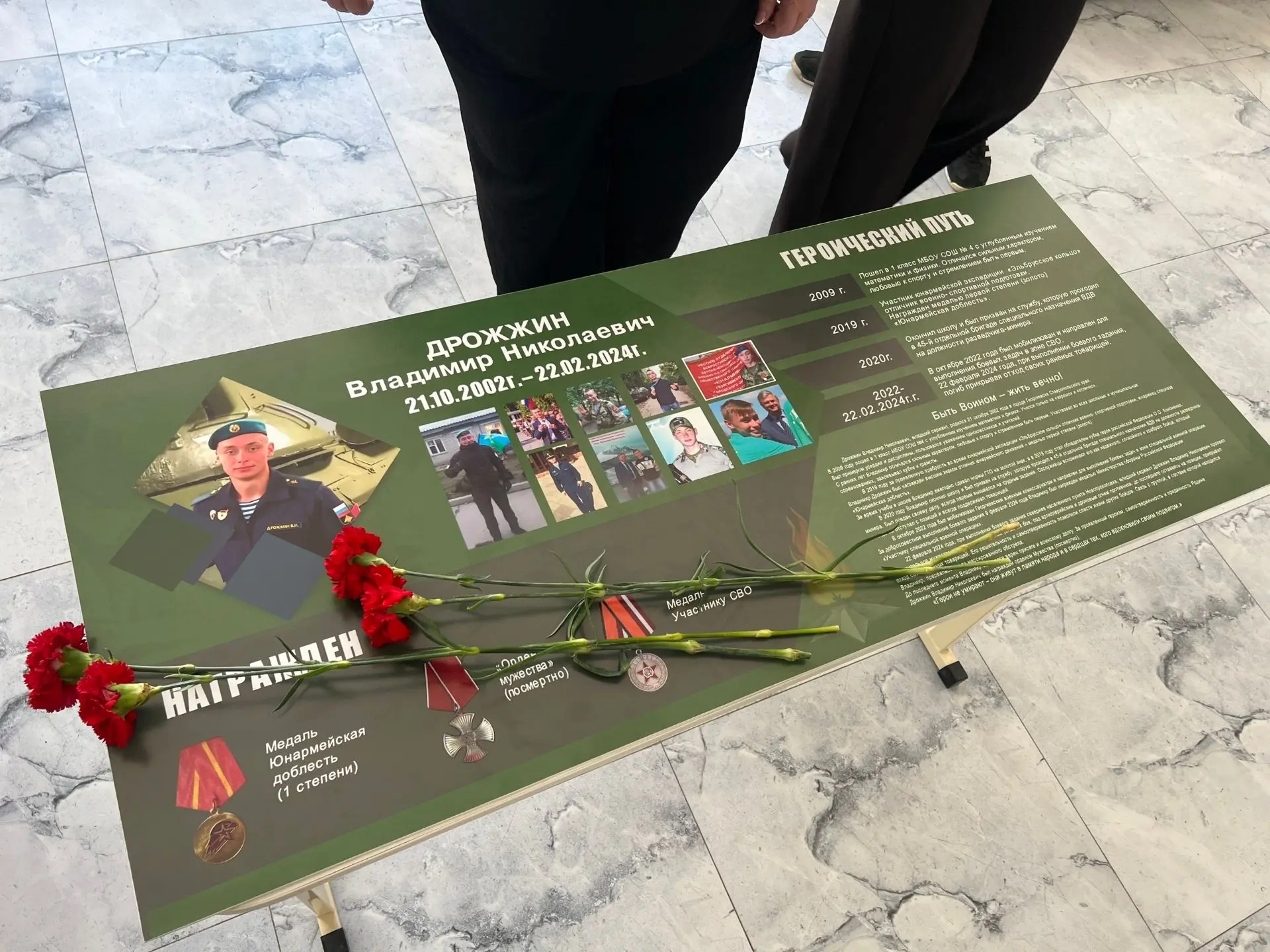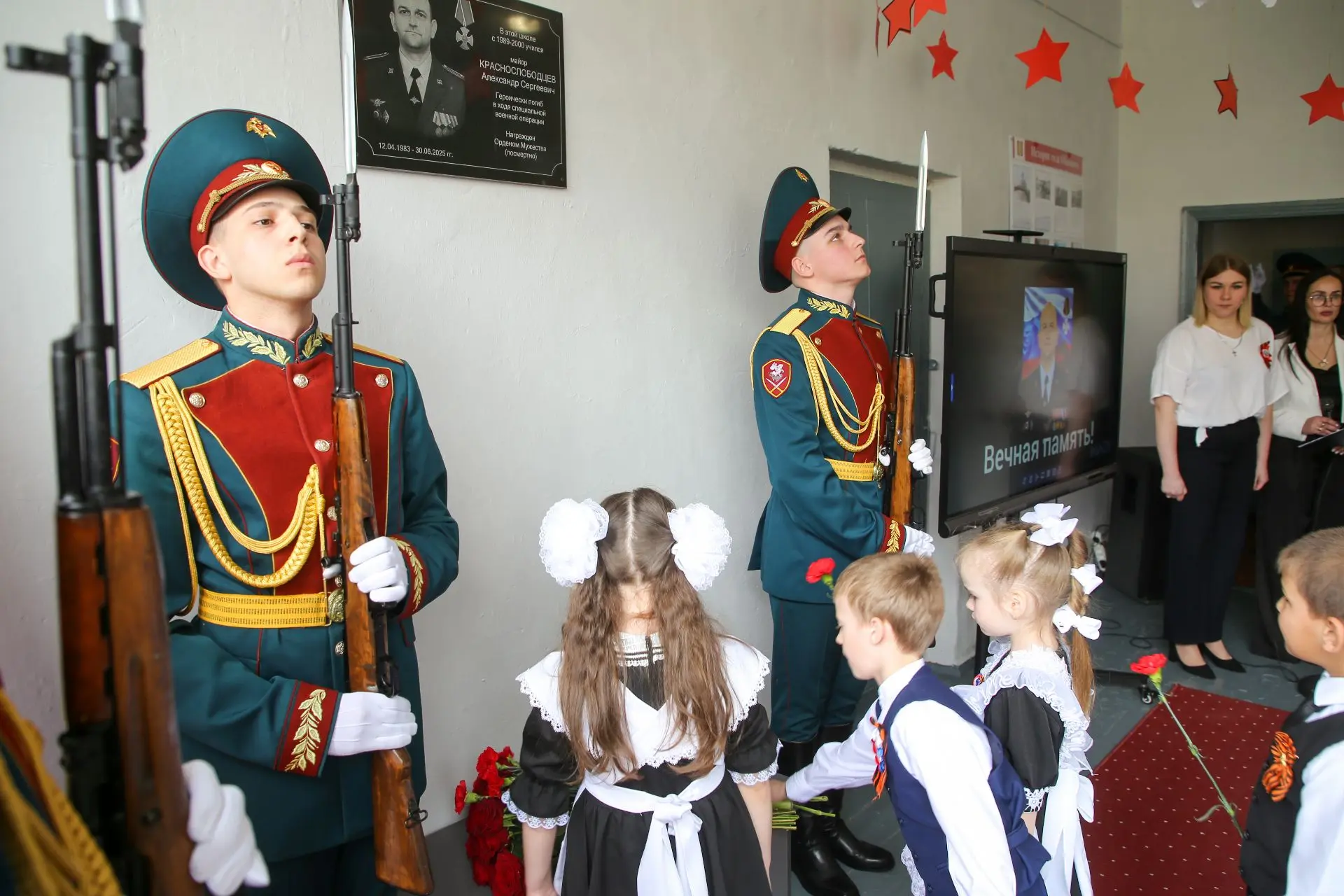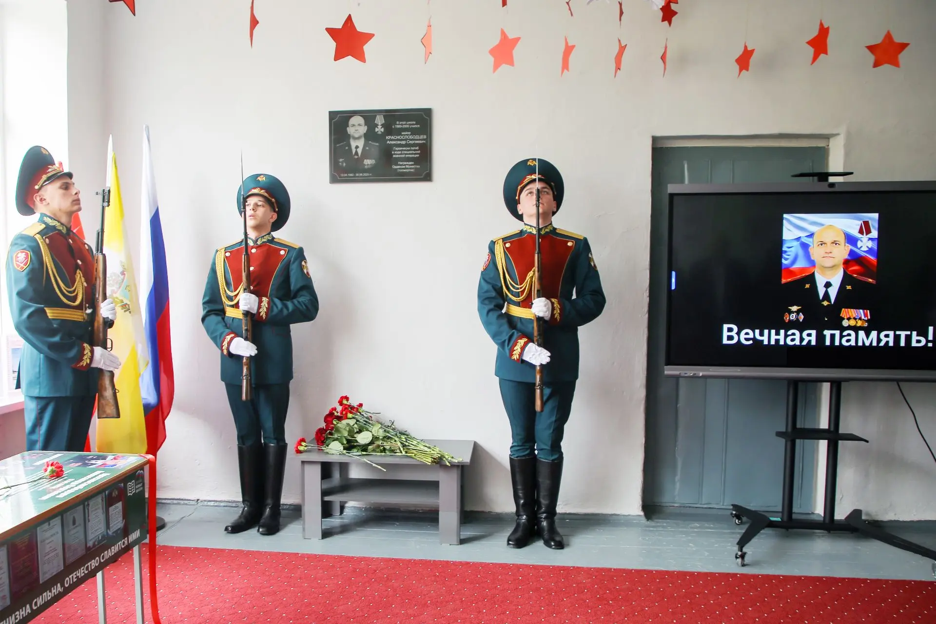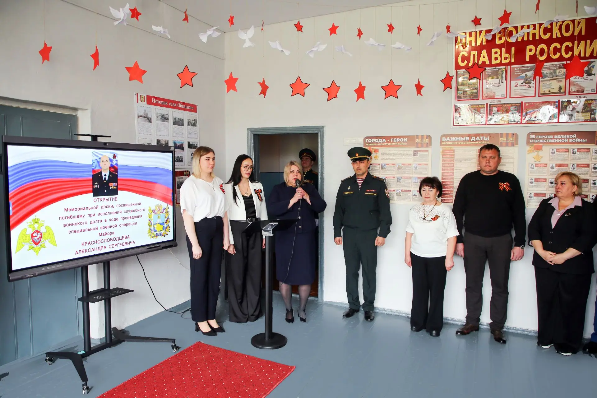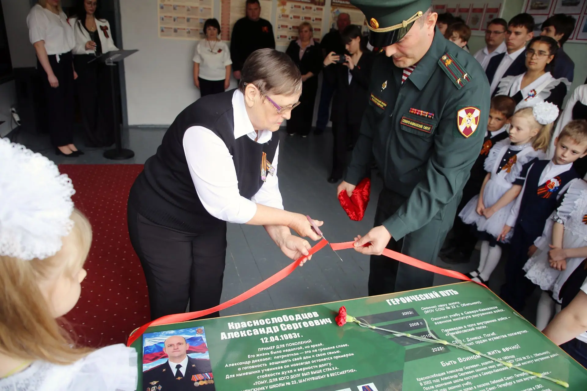 13 апреля 2026 года в МОУ СОШ № 22 с. Обильного состоялось торжественное открытие мемориальной доски и «Парта Героя» выпускнику учебного заведения майору Александру Сергеевичу Краснослободцеву, погибшему при исполнении воинского долга в ходе Специальной военной операции.