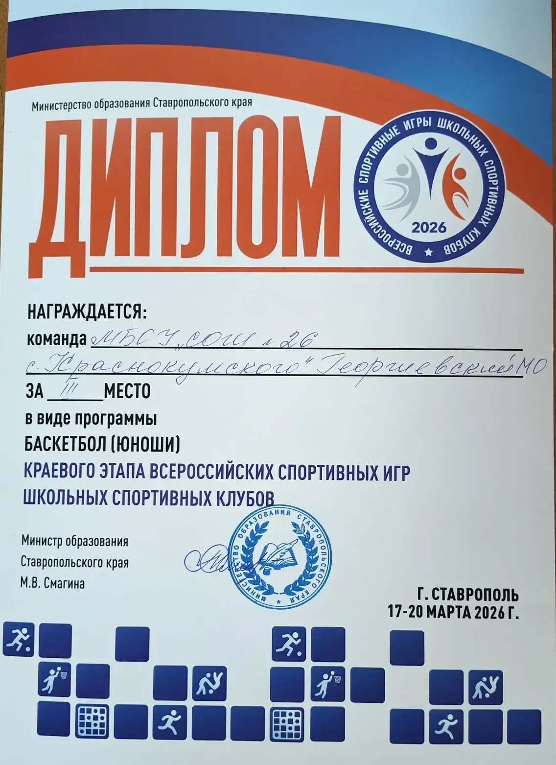 Победители и призёры соревнований награждены грамотами управления образования администрации Георгиевского муниципального округа Ставропольского края и будут представлять Георгиевский муниципальный округ на краевых соревнованиях 21–22 марта 2026 г. в г. Пятигорске.