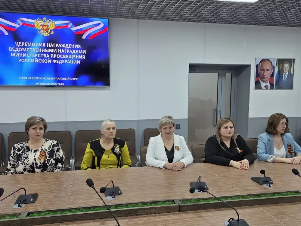 10 апреля 2026 года Глава Георгиевского муниципального округа Ставропольского края А.В.Зайцев в торжественной обстановке вручил педагогическим работникам образовательных организаций Георгиевского муниципального округа Ставропольского края заслуженные награды - ведомственные знаки отличия Министерства просвещения Российской Федерации «Отличник просвещения», дающие право на присвоение звания «Ветеран труда».