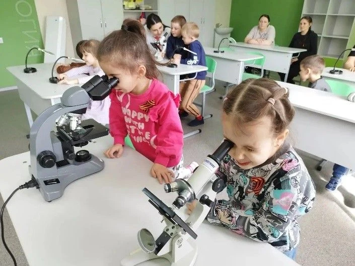 Программа встреч была насыщенной и разнообразной: впервые рассмотреть под микроскопом лист дерева, пыльцу на цветке, увидеть волшебные химические эксперименты, узнать секрет физических явлений, увидеть настоящего робота, собранного обучающимися кружка робототехники, а также освоить азы игры в шахматы.