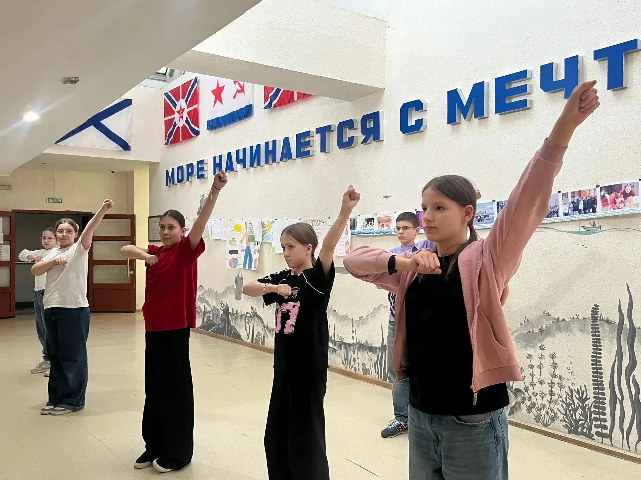 6 апреля почетное право поднять Государственный флаг Российской Федерации предоставлено Большаковой Юлии, ученице 5 Б класса, призеру Лиги чемпионов Северного Кавказа по плаванию, и Клюква Владиславу, ученику 5 Г класса, победителю городского конкурса рисунков "Сказки народов России".