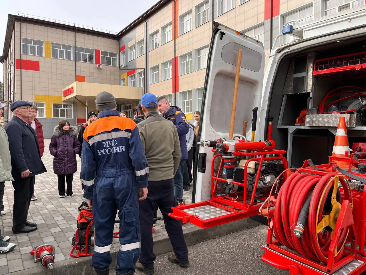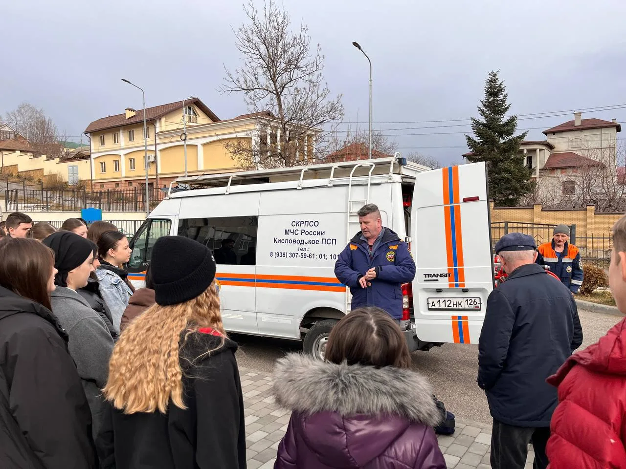 Тренировку по защите детей и персонала образовательной организации от чрезвычайных ситyаций и практическую часть уроков провели сотрудники Поисково-спасательного подразделения МЧС РФ в Ставропольском крае, в городе Кисловодске под руководством начальника Кутуева Р. Р.