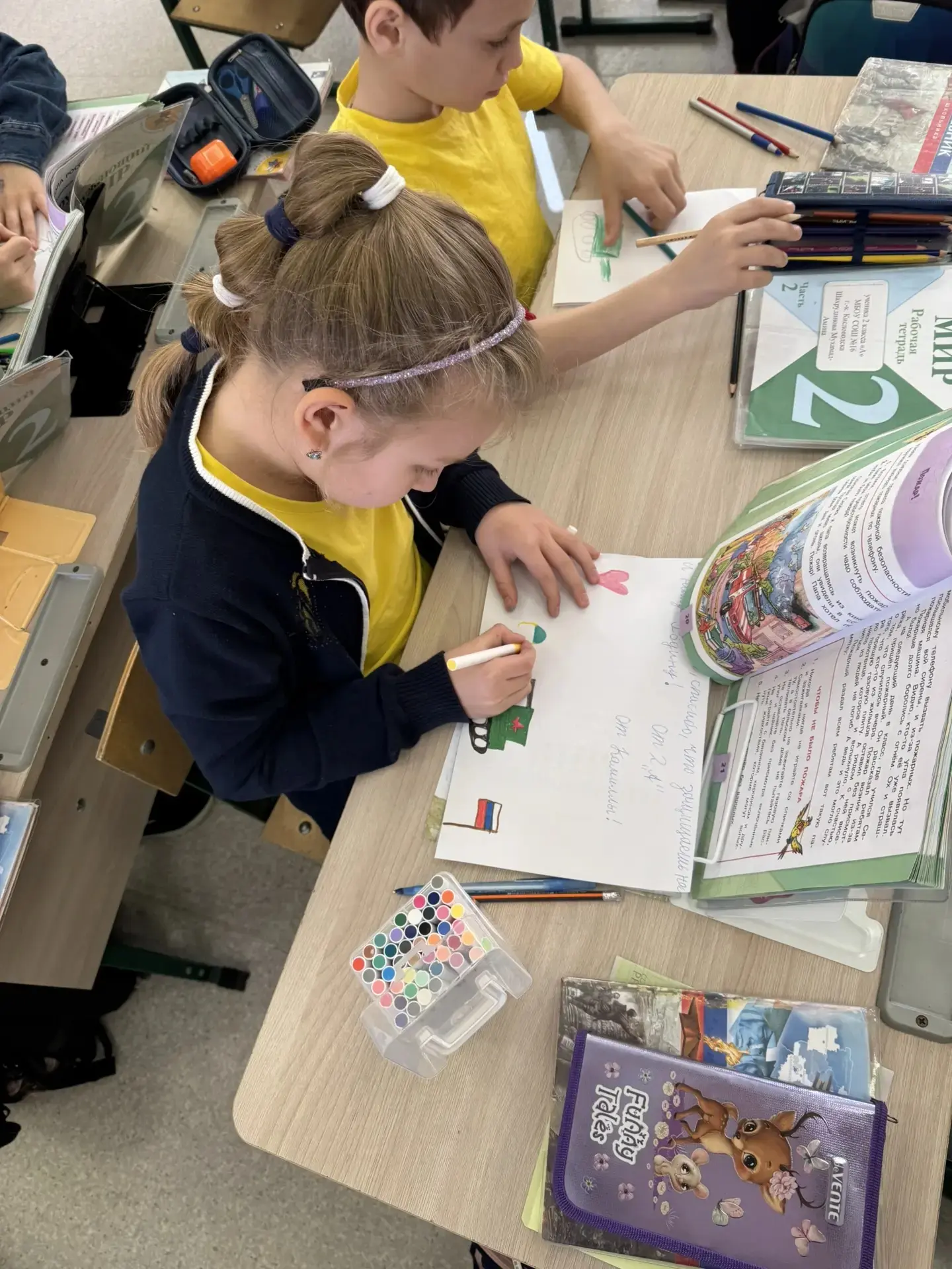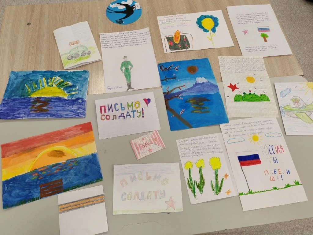 Кроме этого дети написали трогательные письма, а первоклассники нарисовали рисунки, в которые вложили частичку своей души. В каждом послании слова благодарности нашим защитникам за их силу, мужество и стойкость.