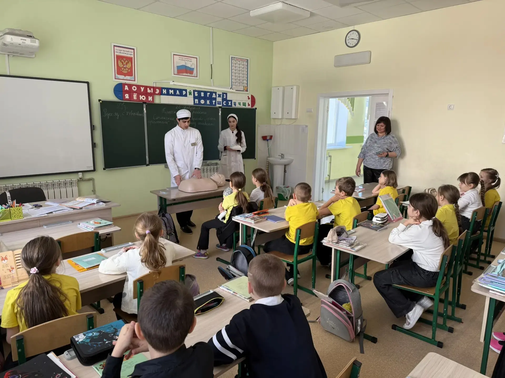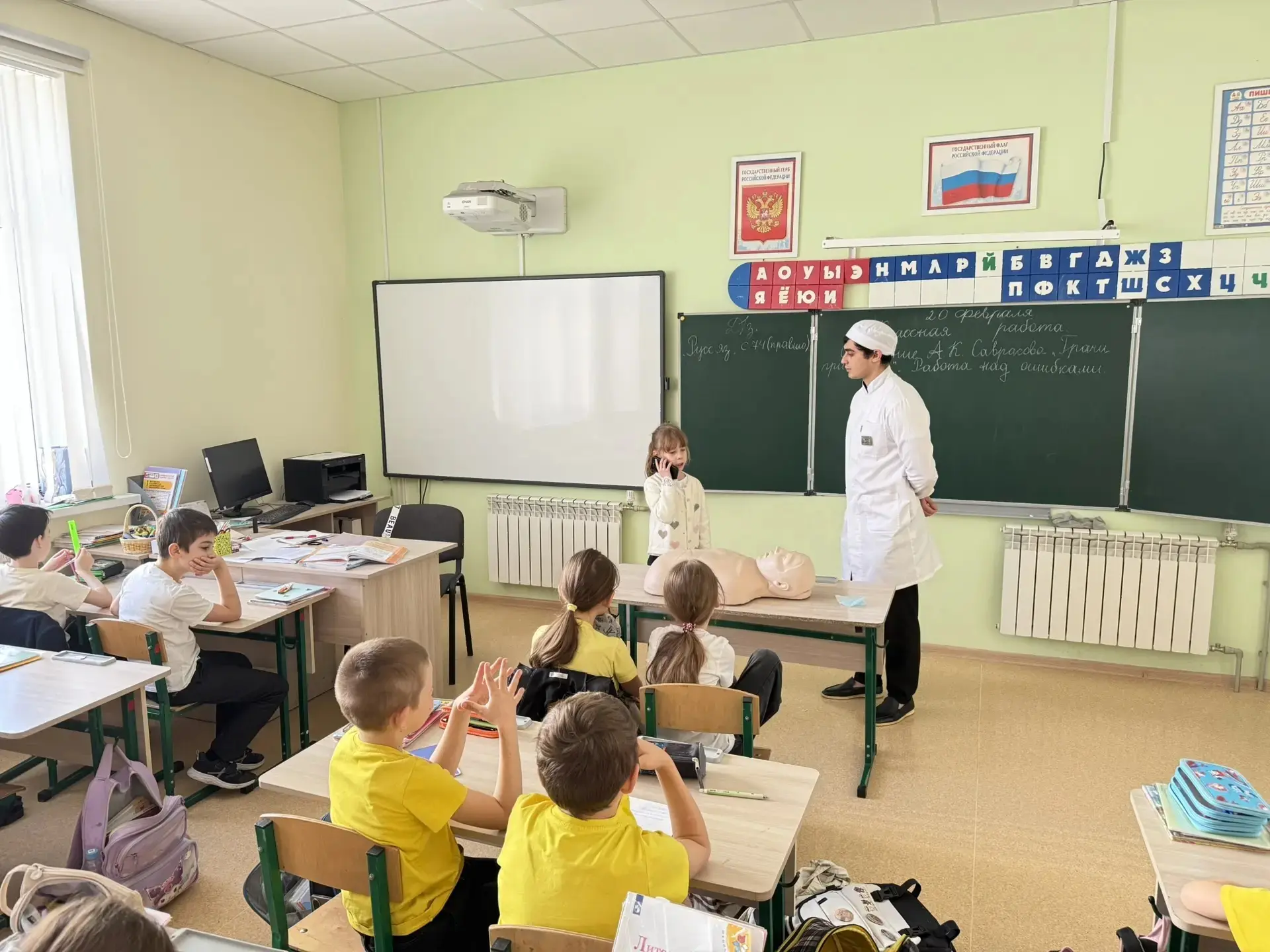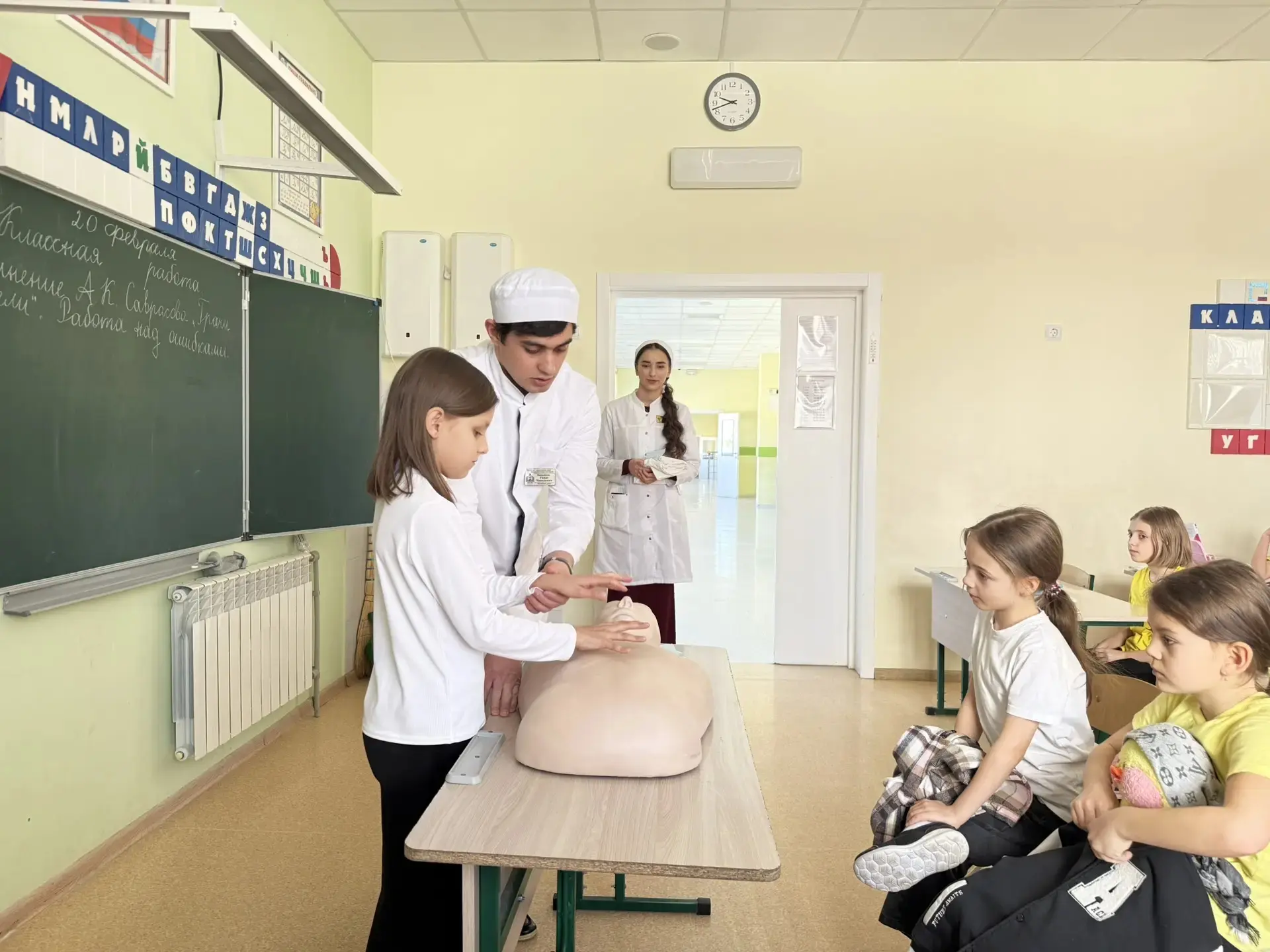 20 февраля в рамках профориентационной работы по программе "Шаг в медицину" студенты Кисловодского медицинского колледжа 1 под руководством преподавателя Ирины Анатольевны Глушковой провели очередное занятие во 2 Б классе.