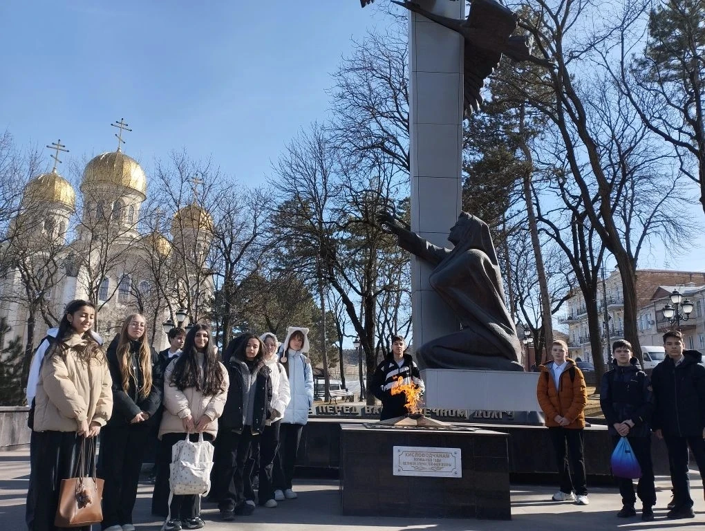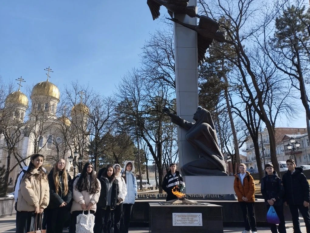 В преддверии Дня защитника Отечества учащиеся 9 Б и 9 В классов МБОУ СОШ 16 приняли участие во Всероссийской патриотической акции "Цветы у обелиска".
