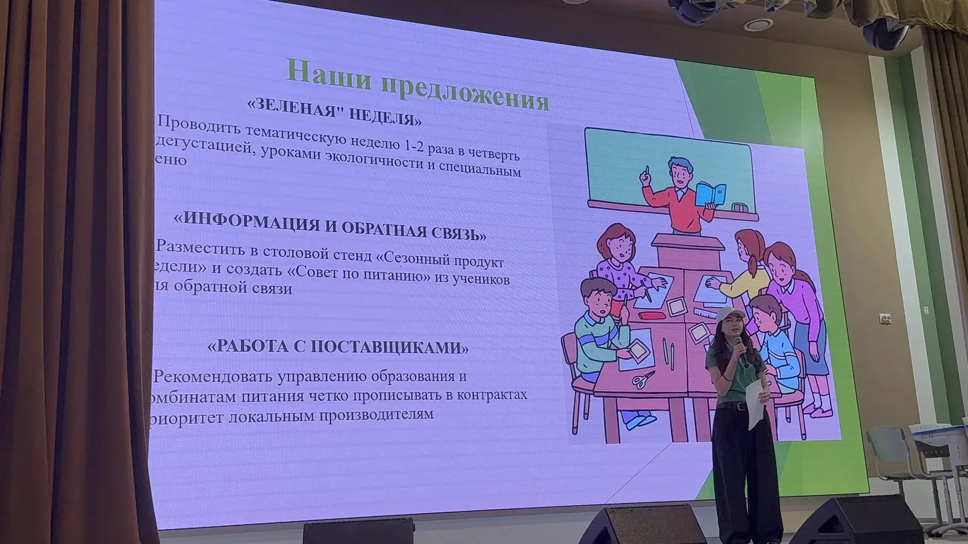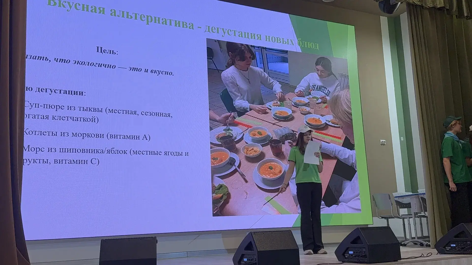 Работа над проектом была кропотливой и заинтересовала работников столовой, учителей и большое количество школьников. Ребята достойно представили свой проект на Эко-чтениях.