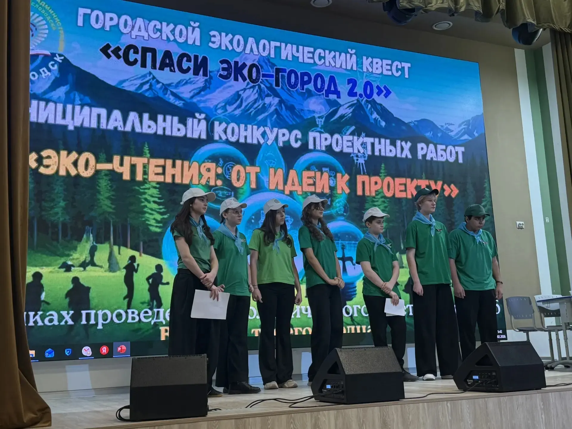 19 февраля команда 8 А класса МБОУ СОШ 16 приняла участие в муниципальном конкурсе проектных работ "Эко - Чтения: от идеи к проекту . Они защитили проект на тему : "Экологический след школьного питания"