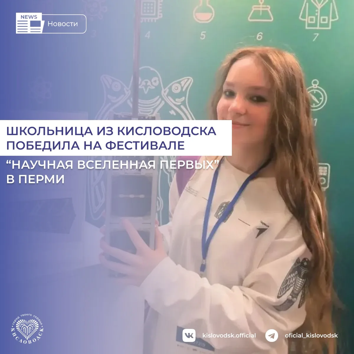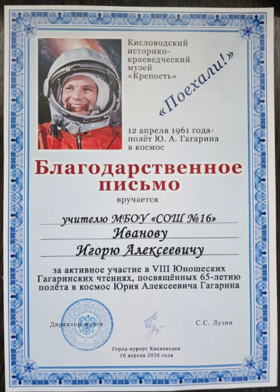 «Поздравляю Алису Воронову с победой на фестивале «Научная Вселенная Первых». Для Кисловодска это хороший результат и подтверждение того, что наши школьники умеют достойно представлять город на крупных всероссийских площадках. Проект «Первые в космосе» получил высокую оценку, и это говорит о серьезной подготовке, интересе к науке и умении доводить свою идею до результата. На площадке фестиваля были представлены инициативы молодых участников, посвященные науке, технологиям и перспективным разработкам. Благодарю Алису, ее педагогов и родителей за этот труд и достойное представление Кисловодска. Уверен, что впереди у нее еще много достижений и новых побед»,