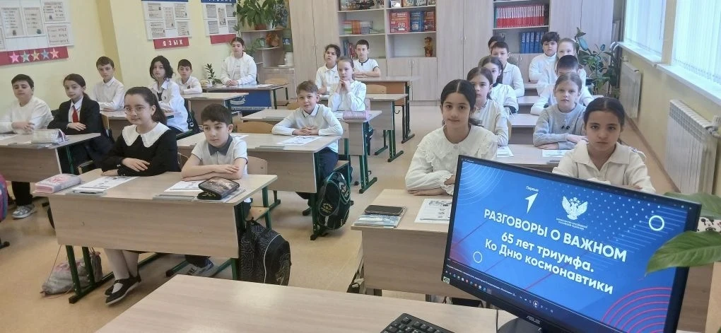 6 апреля в МБОУ СОШ 16 для учащихся 1-11 классов прошло занятие курса внеурочной деятельности «Разговоры о важном», тема которого «65 лет триумфа. Ко Дню космонавтики».