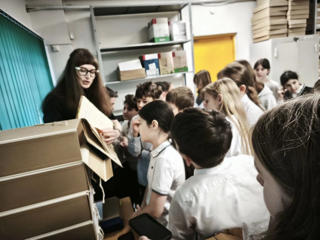 👉 Следующим этапом стала прогулка по нашему архивохранилищу. Здесь школьники смогли собственными глазами увидеть стеллажи, заполненные коробками с историческими документами. ☝Светлана Викторовна подробно рассказала ребятам о том, как хранятся документы, какие условия необходимы для их сохранности и почему так важно бережно относиться к этому наследию. ✂️Ольга Алексеевна провела мастер-класс по ремонту архивных документов.