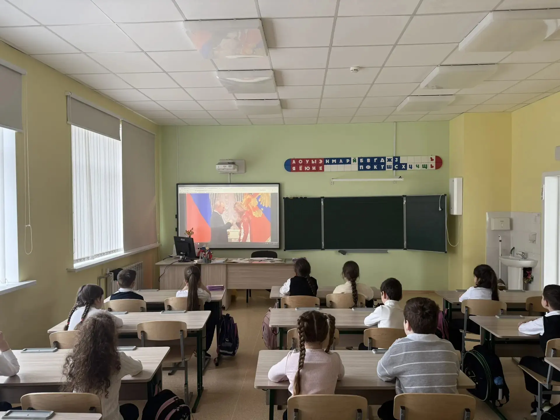 После церемонии состоялось занятие курса внеурочной деятельности "Разговоры о важном" 🇷🇺