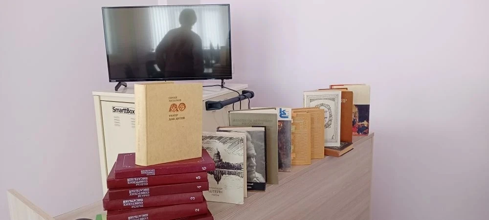 Заведующая библиотекой школы Петросова Ирина Николаевна специально для встречи оформила тематическую книжную выставку.