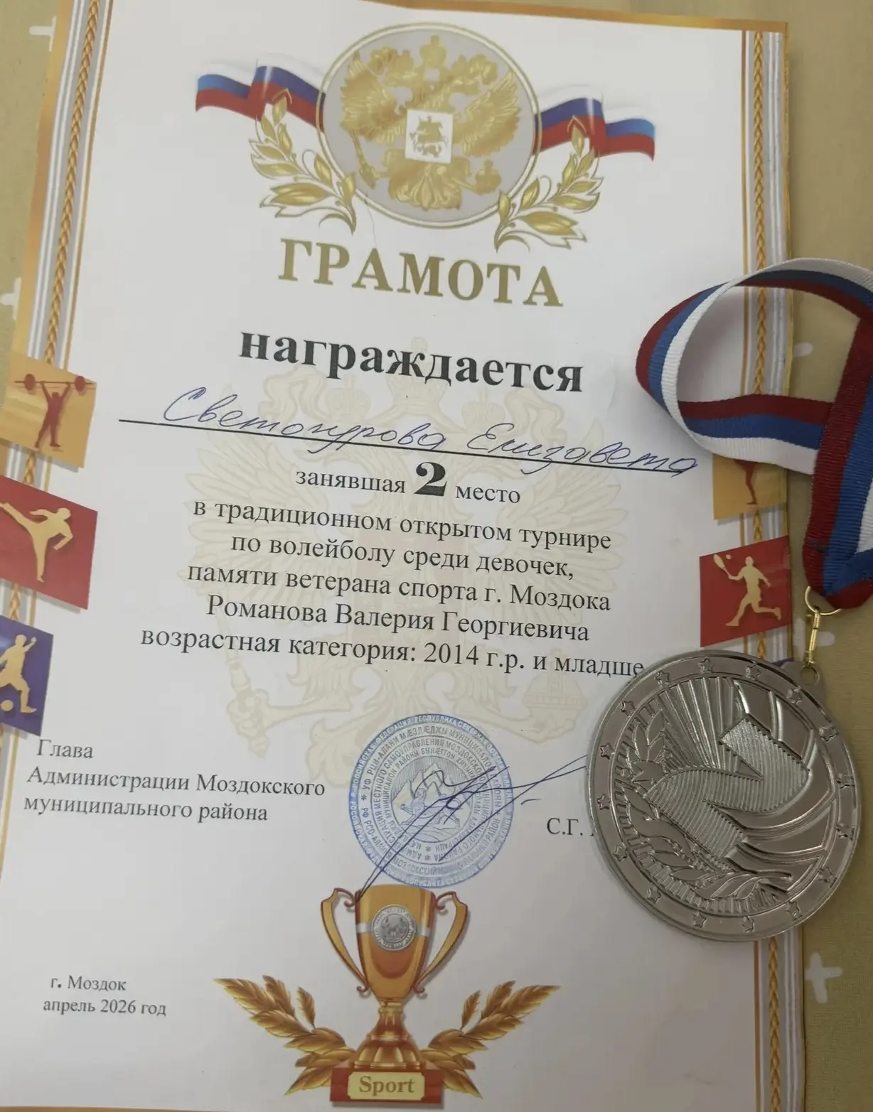 СВЕТОГУРОВУ ЕЛИЗАВЕТУ,члена сборной команды по волейболу г.-к. Кисловодска,
