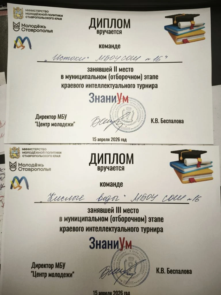 КОМАНДА "КИСЛЫЕ ВОДЫ" МБОУ СОШ 16 заняла 🥉3 МЕСТО 🌟 поздравляем ЖИДАЕВУ ЭДИТУ, ТУМАНОВУ АЛИСУ,КОНДАКОВУ ДАРЬЮ ГАМИДОВУ ЛЕЙЛУ, БАТИЩЕВА ЛЬВА.