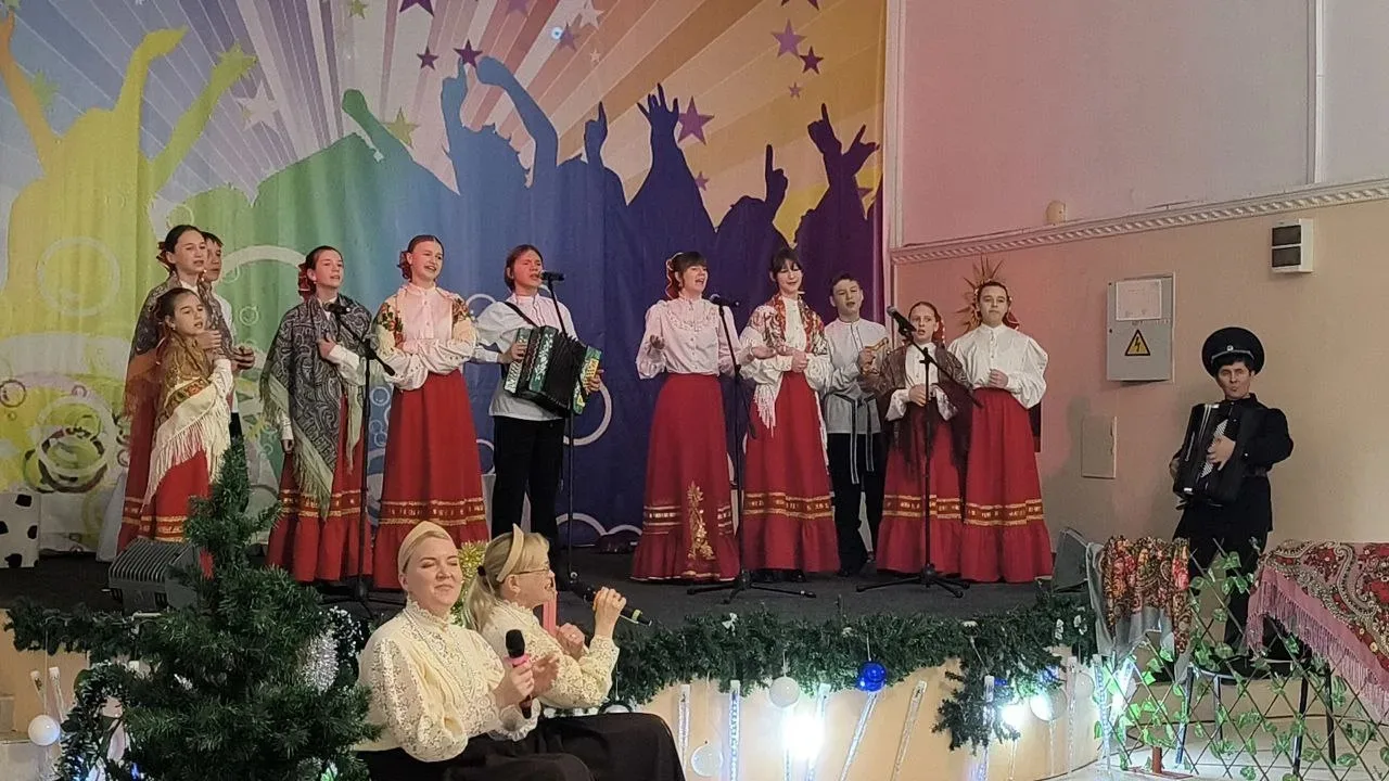 6 января в Дворце культуры прошли Рождественские посиделки "Коляда, коляда..", где участники детского фольклорного ансамбля "Солнышко" – обучающиеся нашей школы Хадугова Мирослава(5б), Сисенко Дарья, Сенникова Варвара, Прокопенко Владимир, Измайлова Анастасия(6а), Калашникова Варвара(9а) приняли участие в данном мероприятии, подарив зрителям волшебную атмосферу рождественского праздника и познакомили всех с народными традициями и обычаями. Ребята исполняли колядки и частушки, играли на народных инструментах, проводили гадания и играли с маленькими зрителями.