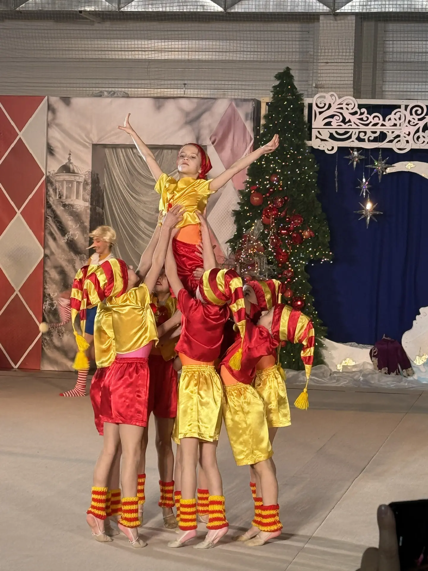 поражающий своей изящностью,великолепием и грациозностью. Спортсменки использовали различные специальные предметы, такие как обручи, мячи, скакалки, ленты и булавы, добавляя шарма и элегантности выступлению.