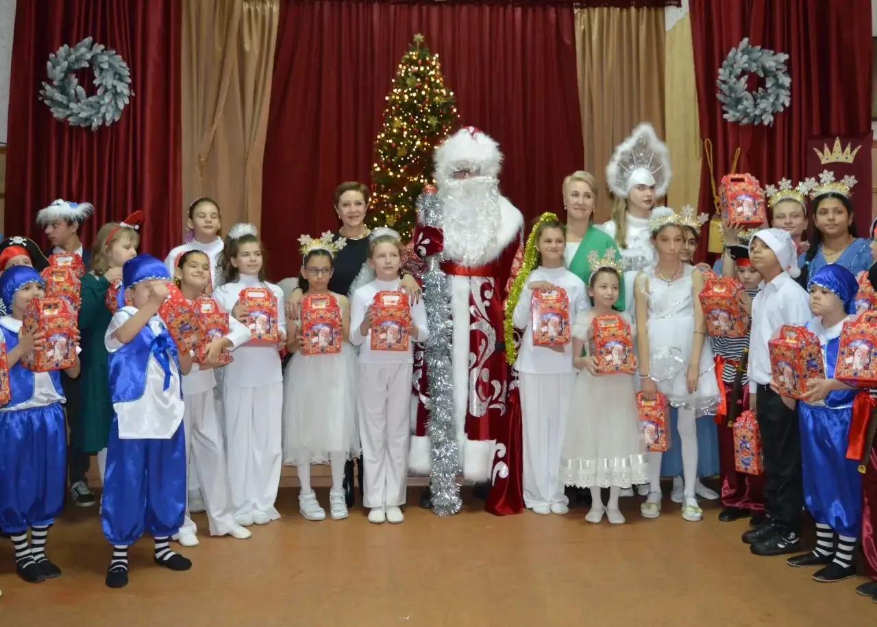Воспитанники школы показали замечательный концерт, поиграли с Дедом Морозом и Снегурочкой, читали стихи и пели песни.