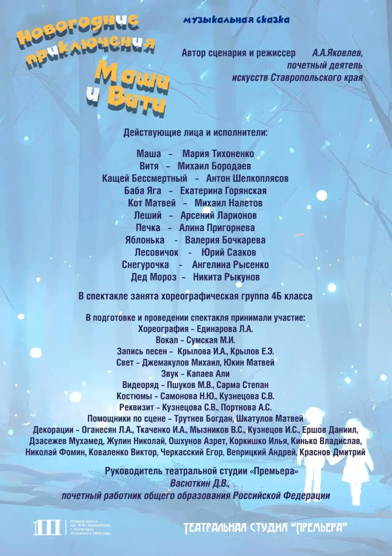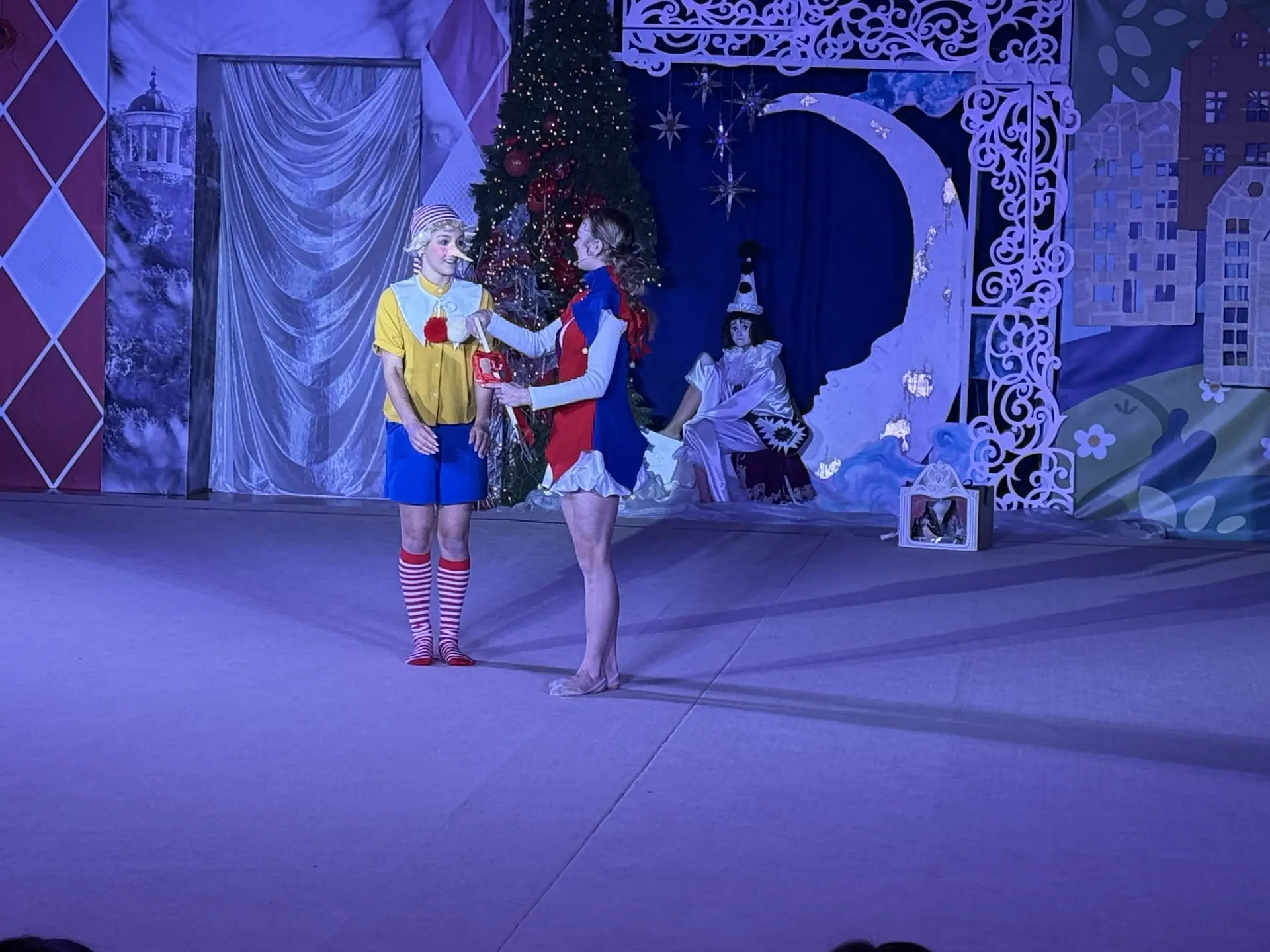 В МБОУ СОШ №1 им. М. Лермонтова проходят новогодние спектакли для учащихся, подготовленные театральной студией «Премьер».