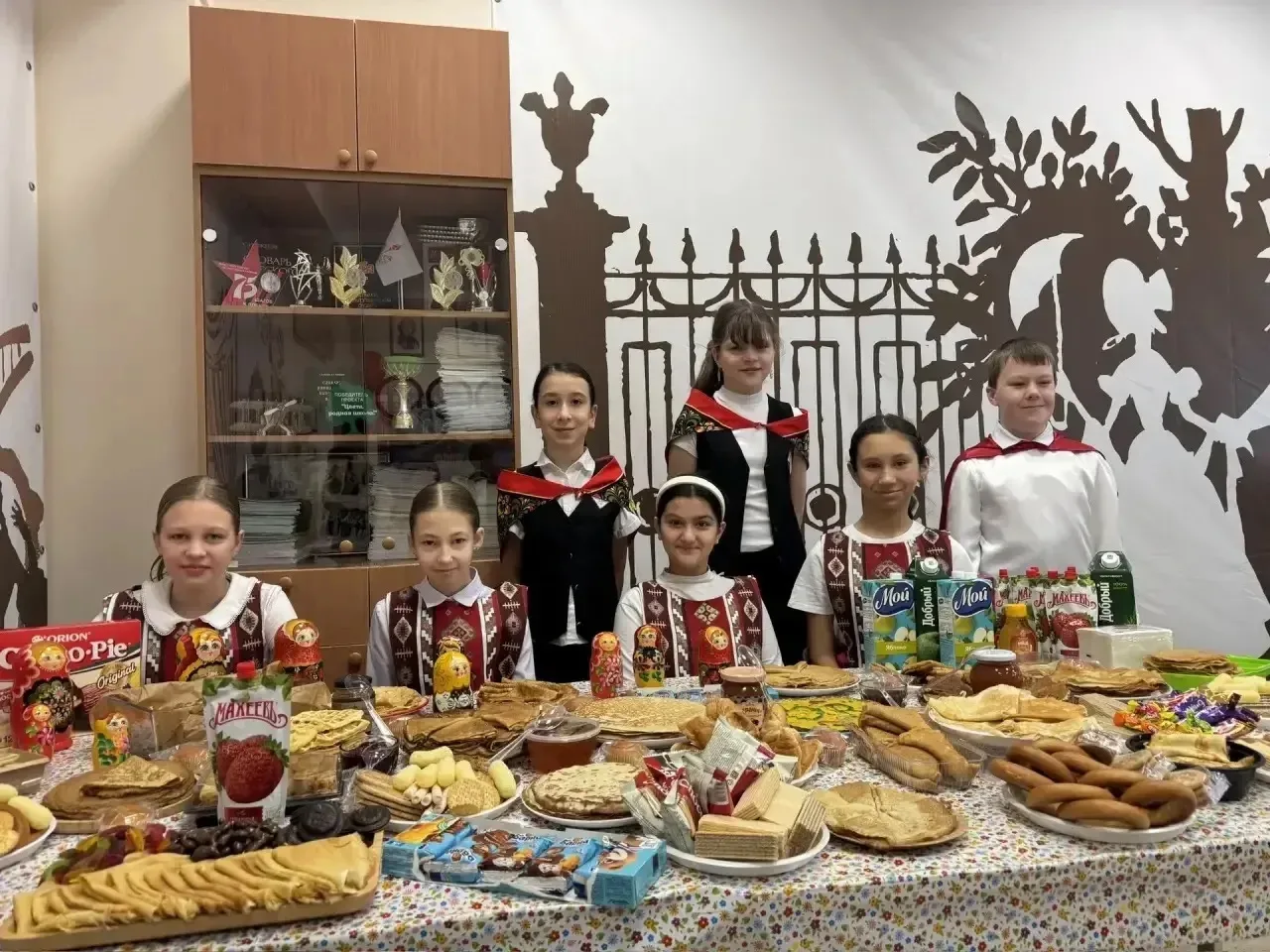 Школьники с удовольствием поддержали русскую традицию, ну и блинов наелись вдоволь!