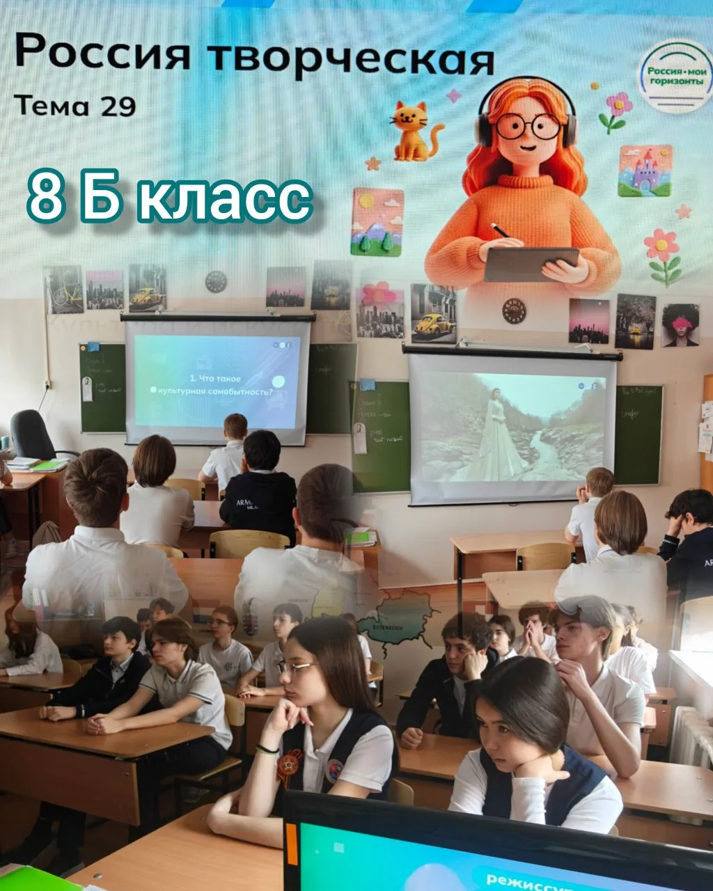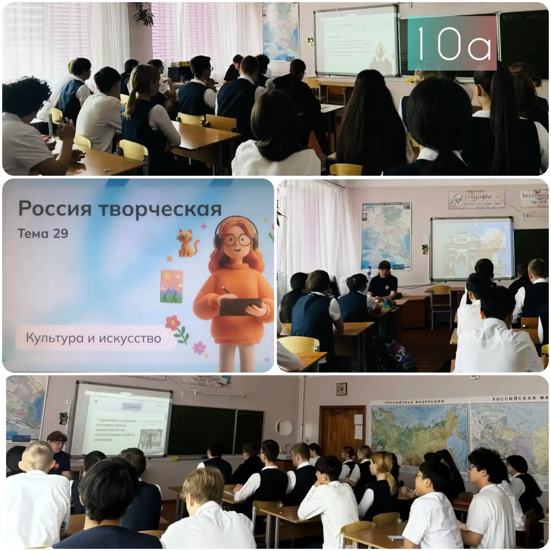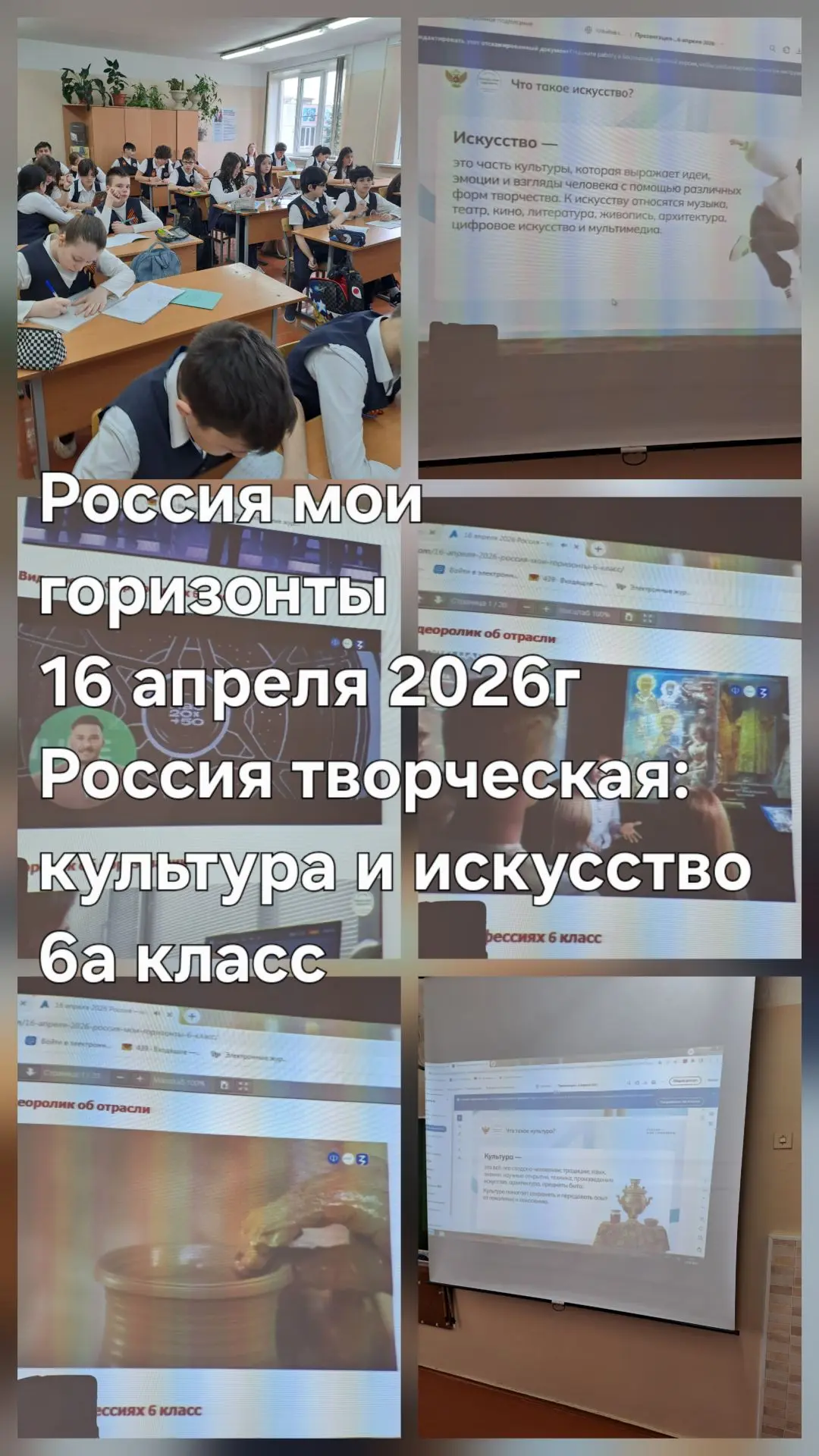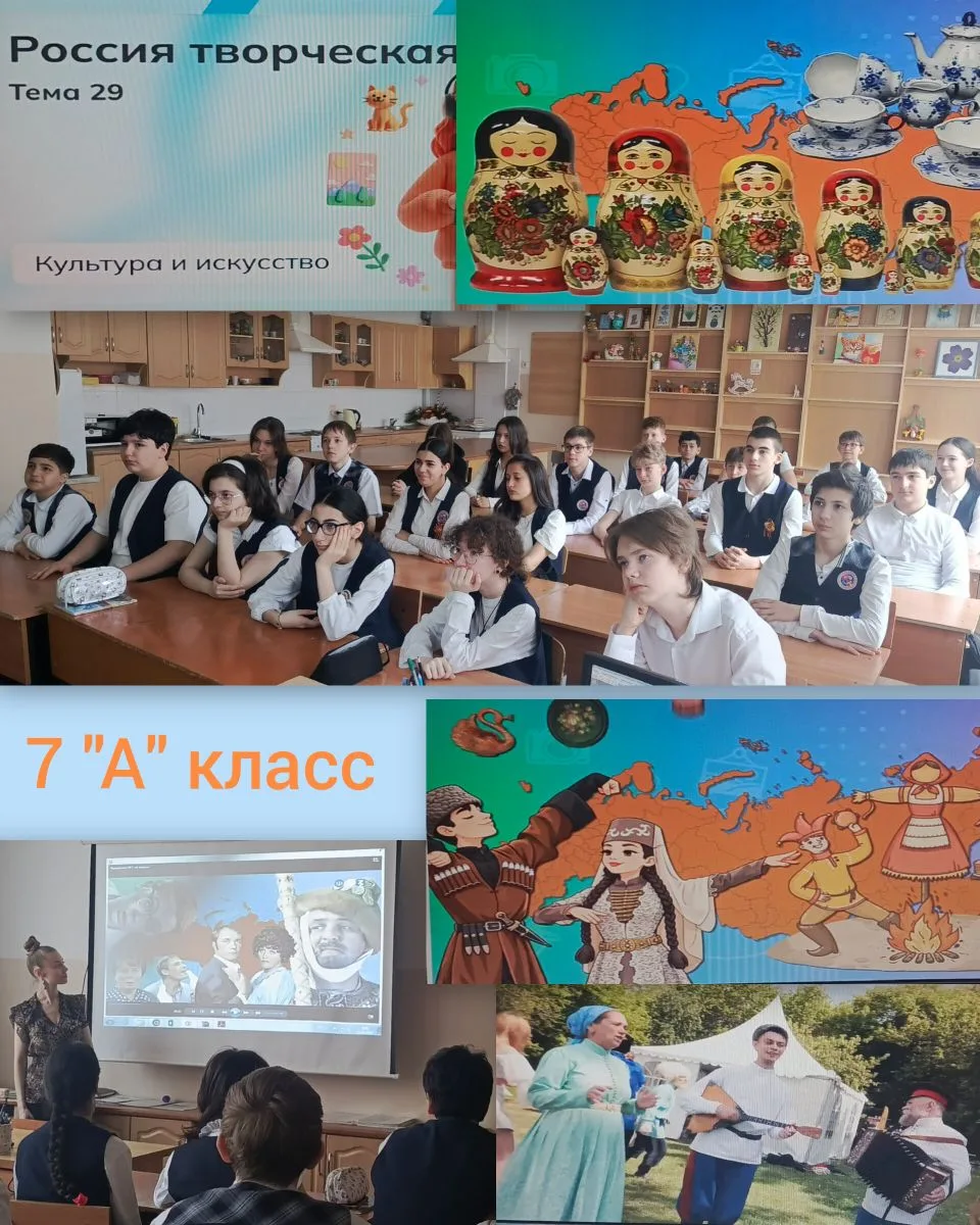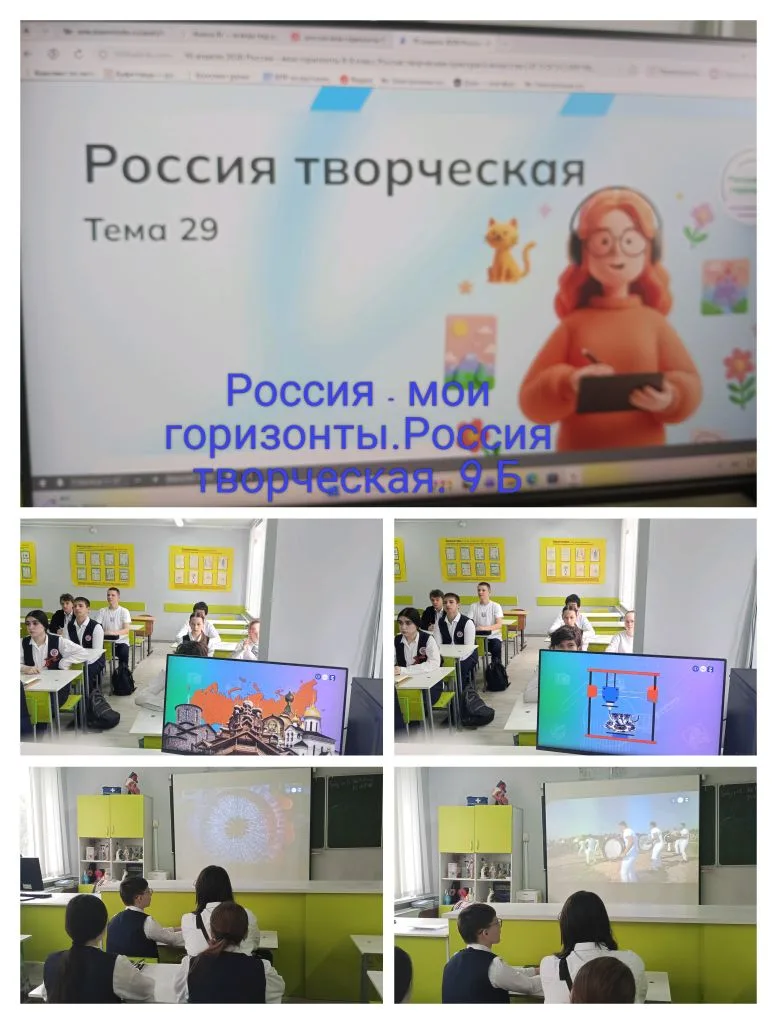 16 апреля на занятии внеурочного курса «Россия — мои горизонты» учащиеся 6–11 классов продолжили профориентационный путь и поговорили о «России творческой» 🇷🇺 🎨