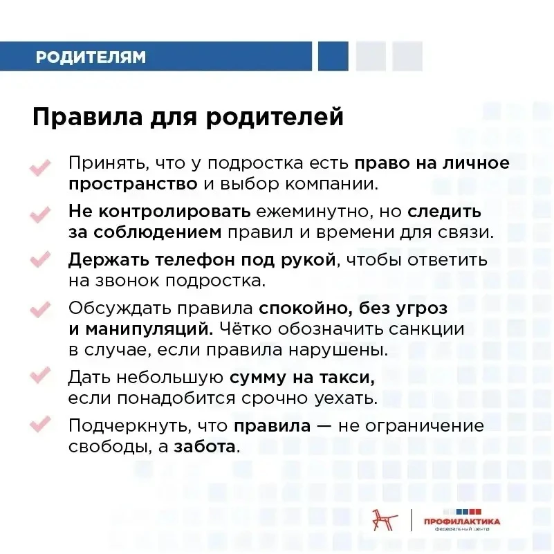 🔹 о том, как говорить с подростками о правилах безопасности;