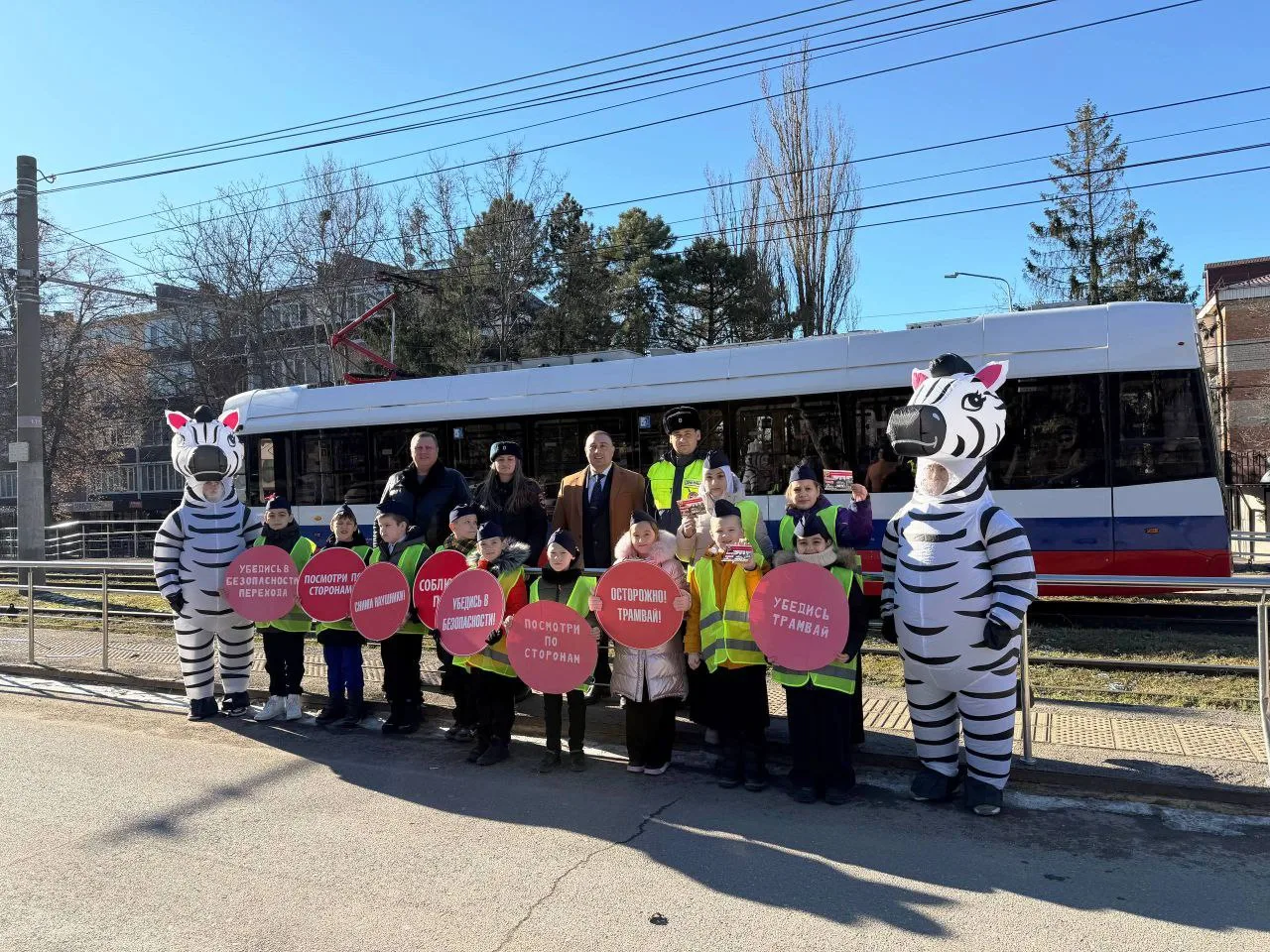 🔴Мероприятие состоялось на одной из центральных улиц города, вблизи трамвайной остановки. Участники акции обращались к пешеходам, призывая их быть особенно внимательными при переходе дорог в зонах движения трамваев. Они напомнили горожанам о необходимости:
