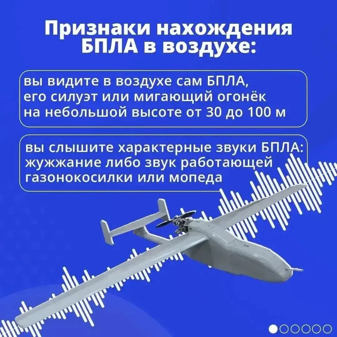 - вы слышите характерные звуки БПЛА: жужжание либо звук работающей газонокосилки или мопеда.